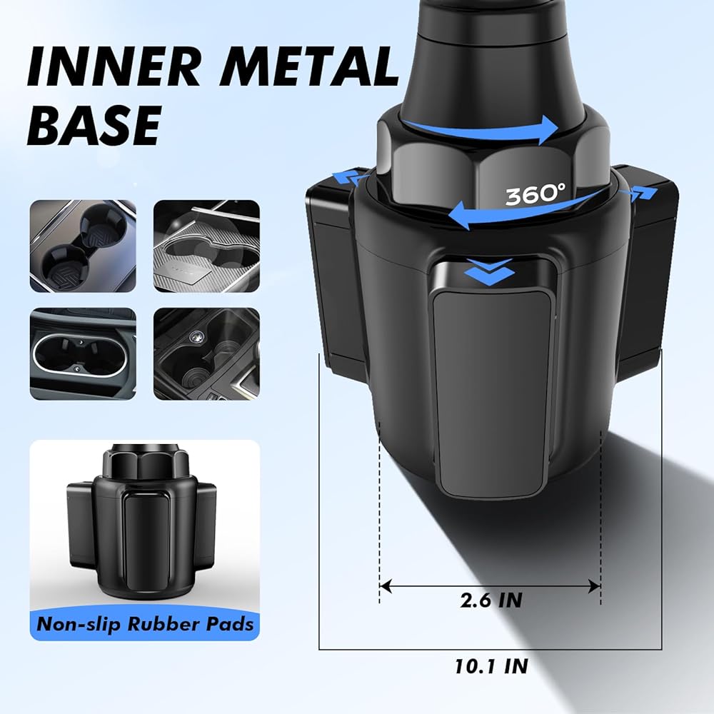 • 🚗️[قاعدة فائقة الثبات وقابلة للتوسيع] يمكن تمديد قاعدة حامل الأكواب للهاتف من 2.4 بوصة إلى 4.0 بوصة عن طريق تدوير المقبض، والذي يناسب جميع حاملات أكواب السيارات تقريبًا، مثل السيارة وسيارات الدفع الرباعي والشاحنات وعربة الجولف وجهاز المشي وما إلى ذلك، مما يجعله ملحقًا متعدد الاستخدامات لجميع احتياجات السفر الخاصة بك. يستخدم هيكلًا قويًا ومتينًا يمنع أي اهتزاز أو تذبذب أثناء ركوب السيارة. (ملاحظة: غير متوافق مع حامل الأكواب البيضاوي.)