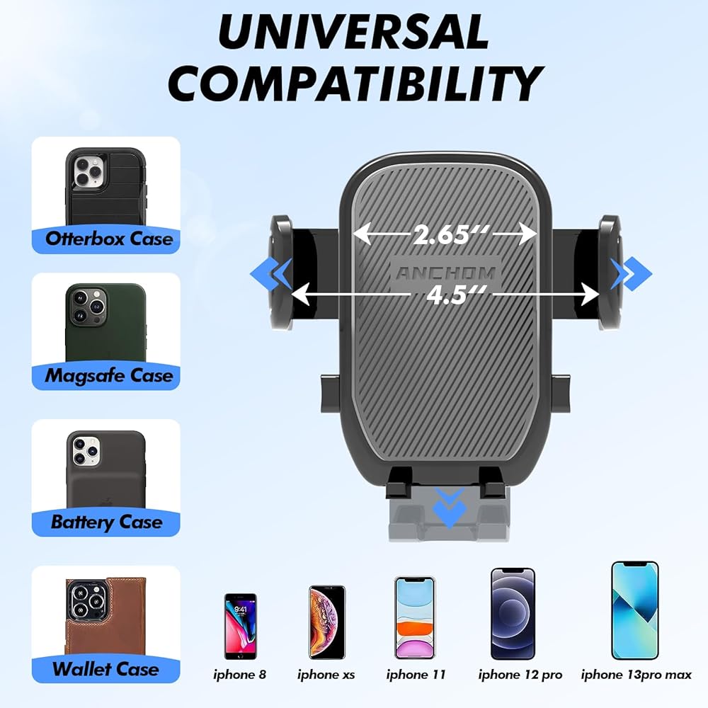 • 📱[هاتف كبير وجراب سميك] حامل هاتف السيارة مثالي للهواتف الذكية حتى 6.7 بوصة وحافظات الهاتف السميكة، متوافق مع 14/14 Plus/14 Pro/14 Pro Max/14 Mini/13/13 Pro/13 برو ماكس/13 ميني/12/12 برو/12 برو ماكس/12 ميني/11 برو ماكس/11 برو/11/XS MAX/XS/XR/X/8/8 Plus/ Samsung Galaxy Note20/S21/S21+/S20+ /S20 Ultra/ LG، إلخ. يتميز حامل هاتف السيارة بأنه قوي بشكل استثنائي لحمل هاتفك بإحكام.