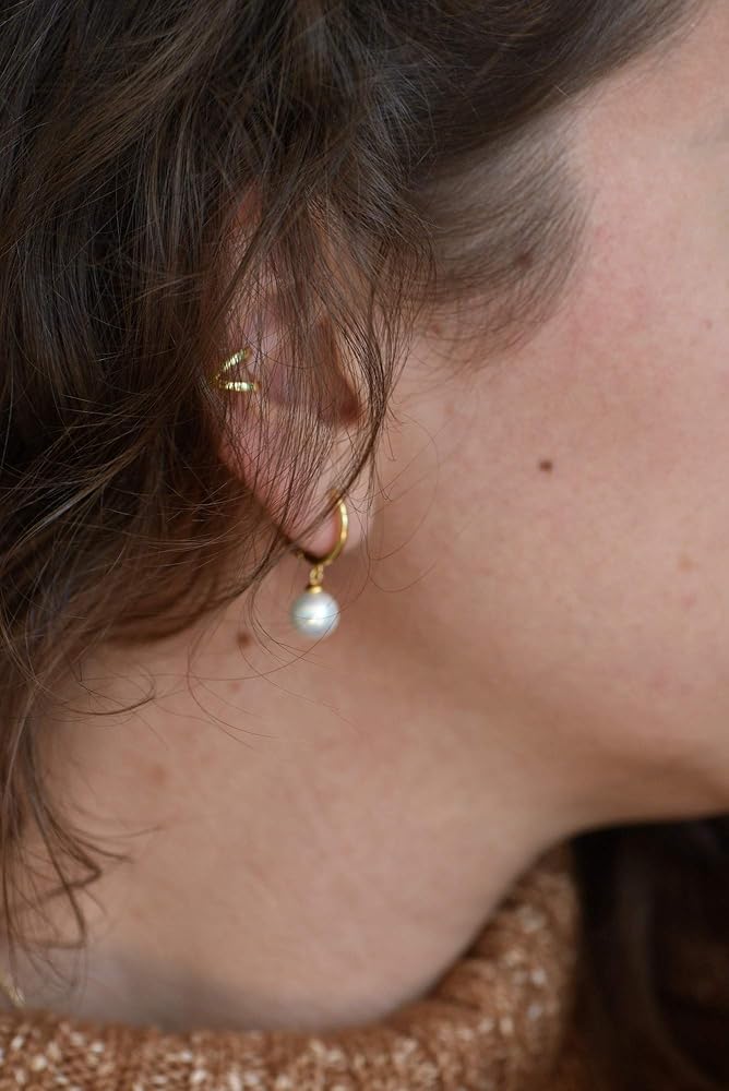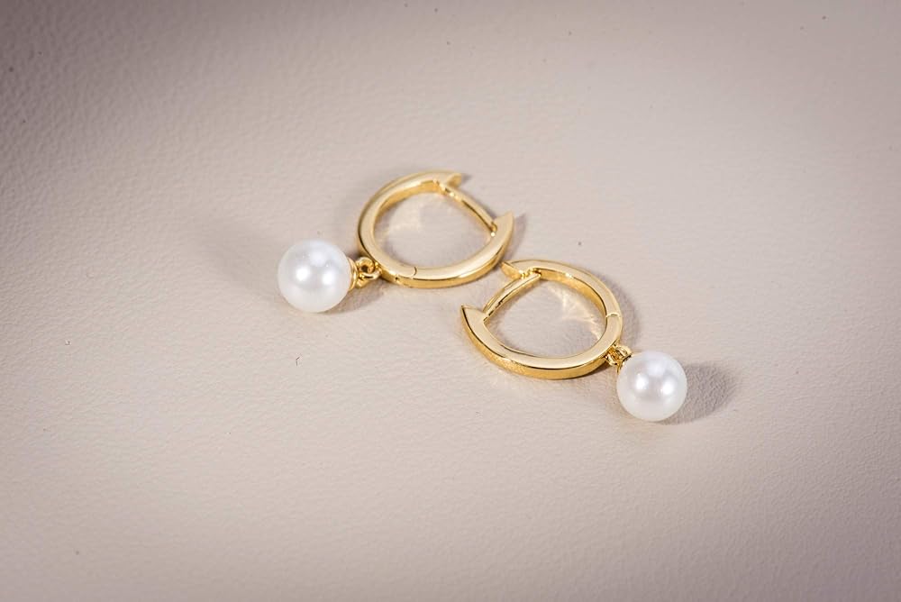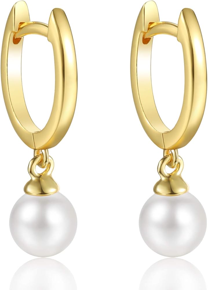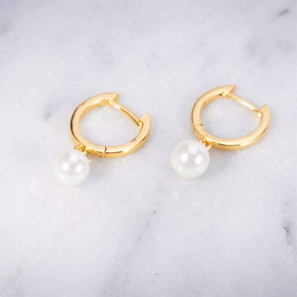 أقراط لؤلؤية مطلية بالذهب عيار 18 قيراط أقراط هوجي هوب صغيرة | أقراط اللؤلؤ الذهبية | الأطواق اليومية اللذيذة | مجوهرات هدايا العروسة