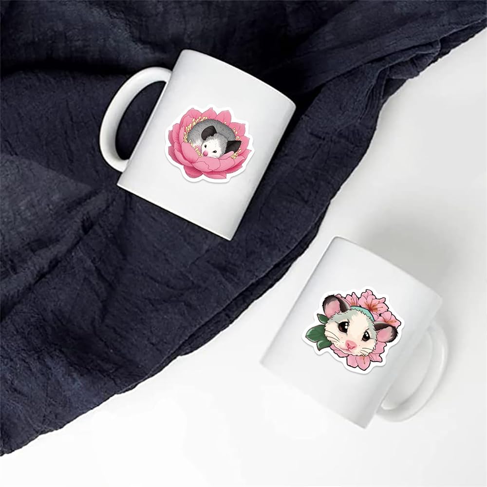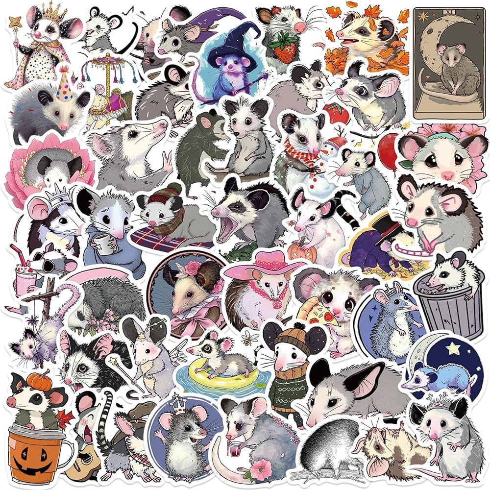 Cartoon Opossum Stickers 50pcs Cute Animal Polyvinyl Waterproof Deals Laptop Water Bottle Notebook Stickers for Kid Teens And Adult