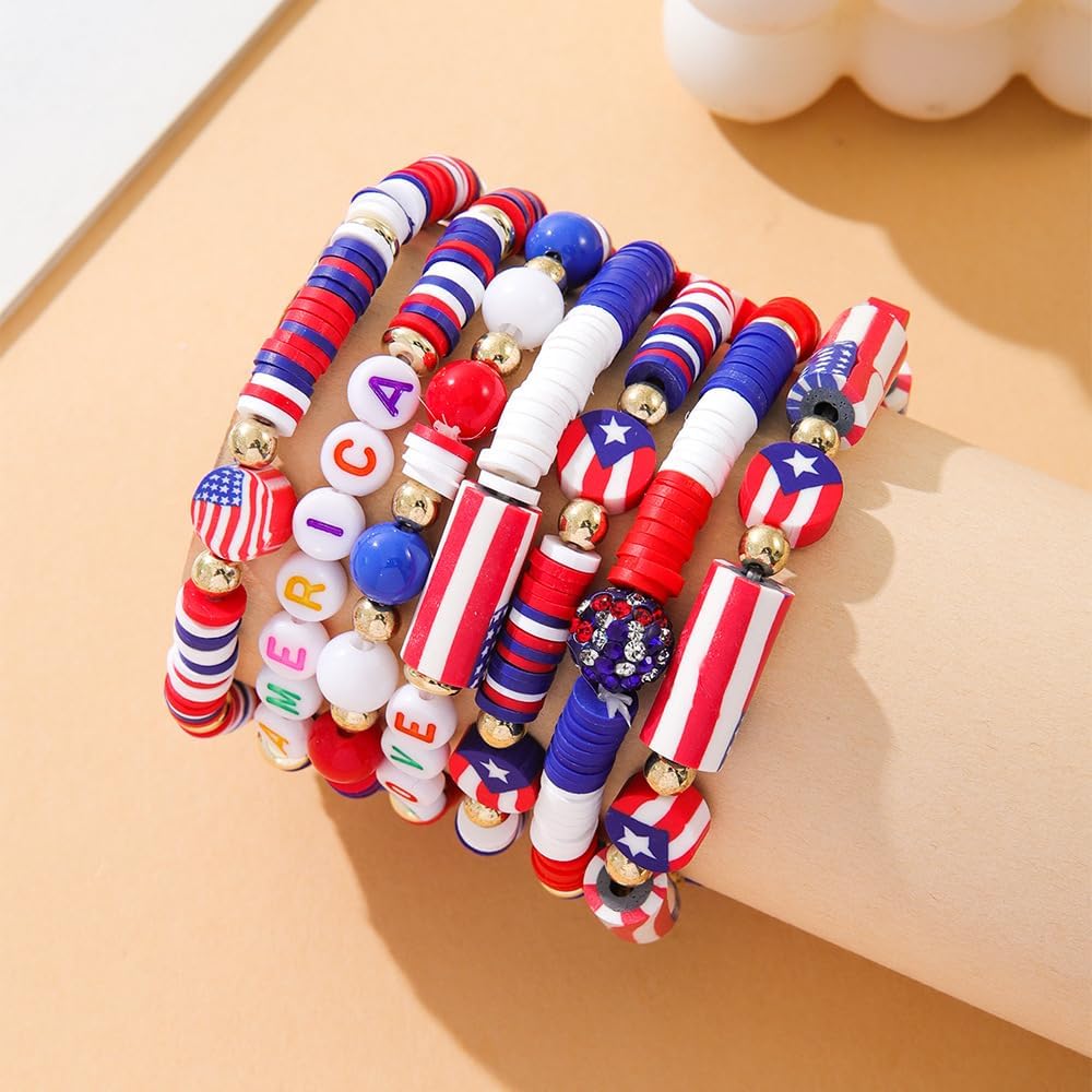 【مجموعة أساور الرابع من يوليو】مجموعة أساور هيشي بألوان متعددة مختلطة، وهي مثيرة للاهتمام ومليئة بالحيوية ومناسبة جدًا للارتداء اليومي. إنها هدية رائعة للحفلات في الرابع من يوليو. انها مثيرة للاهتمام وحيوية.