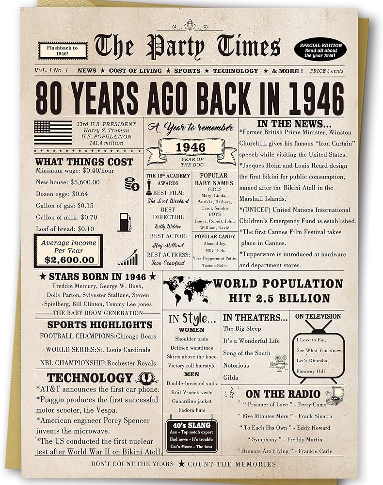أفكار هدايا عيد الميلاد الخمسين للرجال: هدية عيد ميلاد لا تُنسى لعائلتك أو كبار السن. البطاقة مليئة بقصص مثيرة للاهتمام عن عام 1974، فلنتذكر الماضي، وقم بإعداد هدية تذكارية ذات أهمية للمستلم.