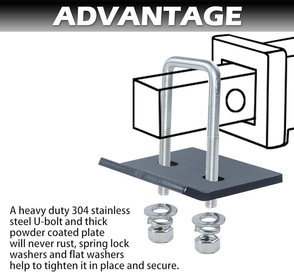 - Package Includes: 1x U-Bolt+ 1x Tightener Plate+ 2x Flat Wahsers+ 2x Spring Washers+ 2x Hex Nuts.