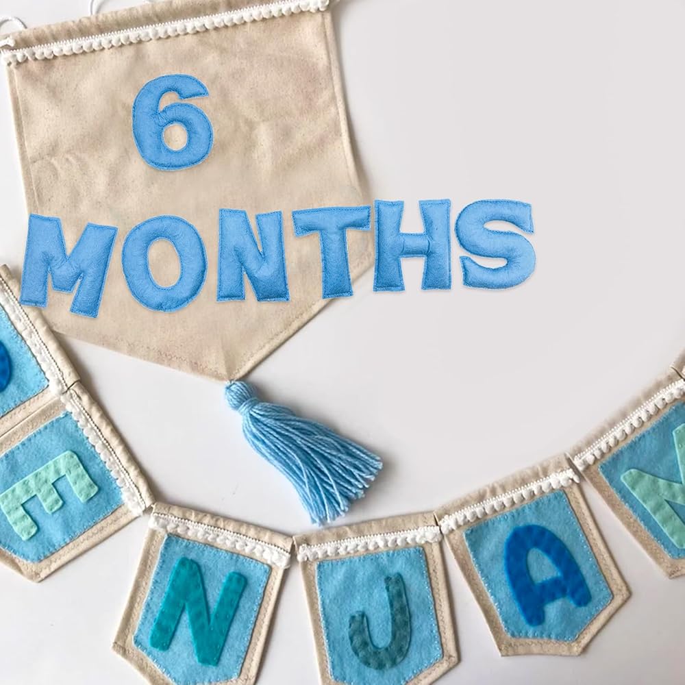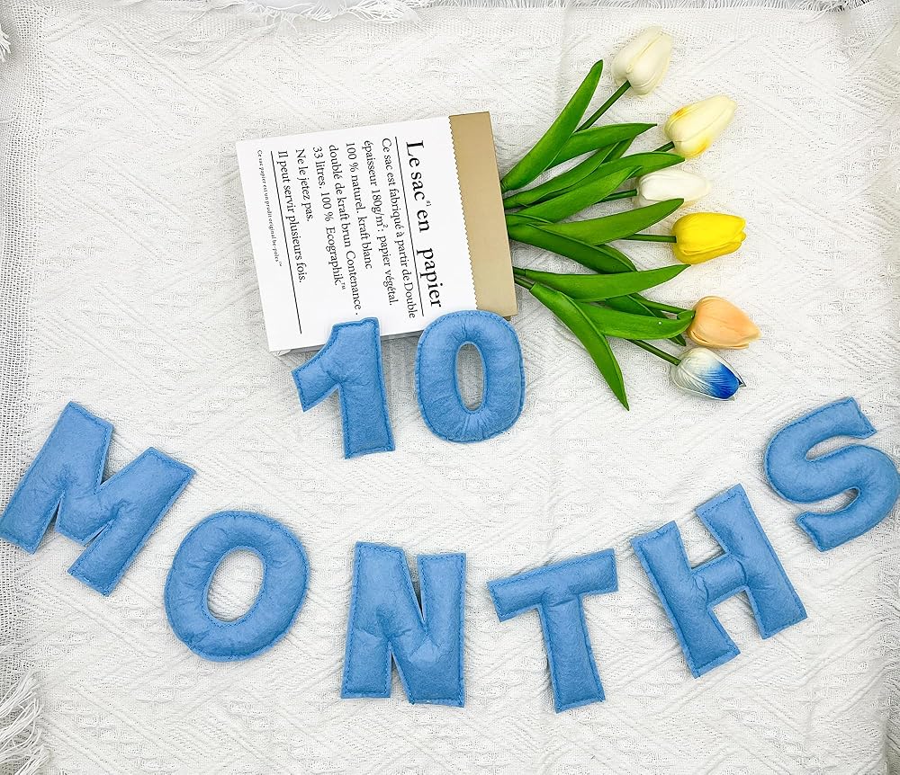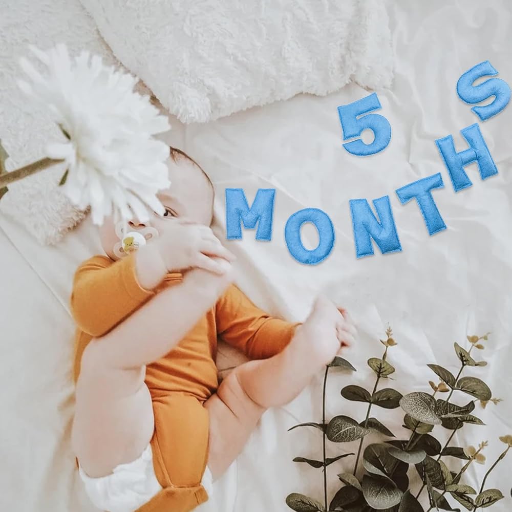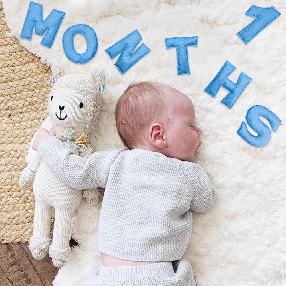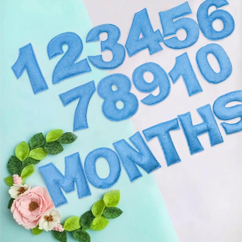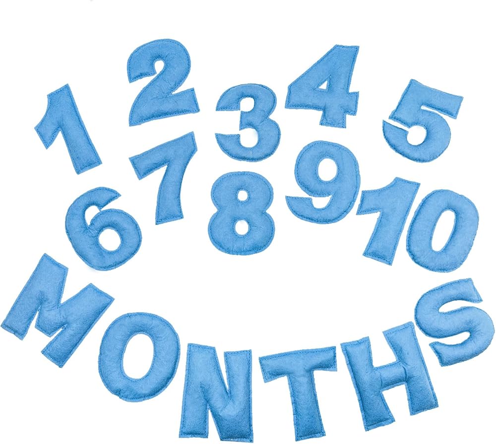 مجموعة أرقام من اللباد الصوفي الشهرية للطفل، 0-12 رقمًا وكلمة "أشهر"، بطاقات نمو الطفل والحمل، مثالية لصور المعالم الشهرية الرائعة لطفلك حديث الولادة (أزرق)