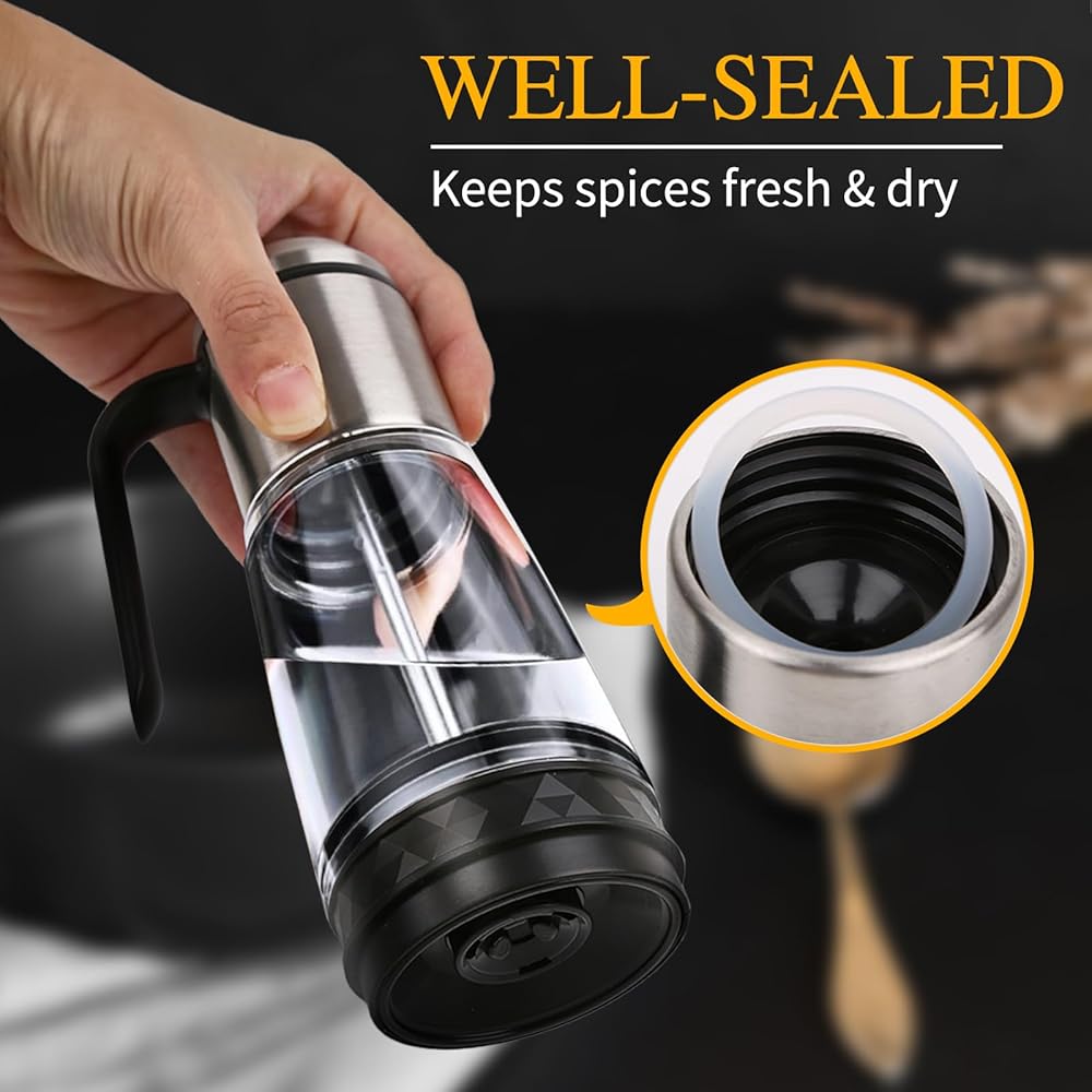 USER-FRIEDNDLY DESIGN: With a generous 5.75 oz capacity, you won't need frequent refills. The well-sealed container eliminates the need to open the lid when dispensing spices. Just fill it with your preferred spice, securely attach the screw-on lid, and enjoy simplified seasoning.