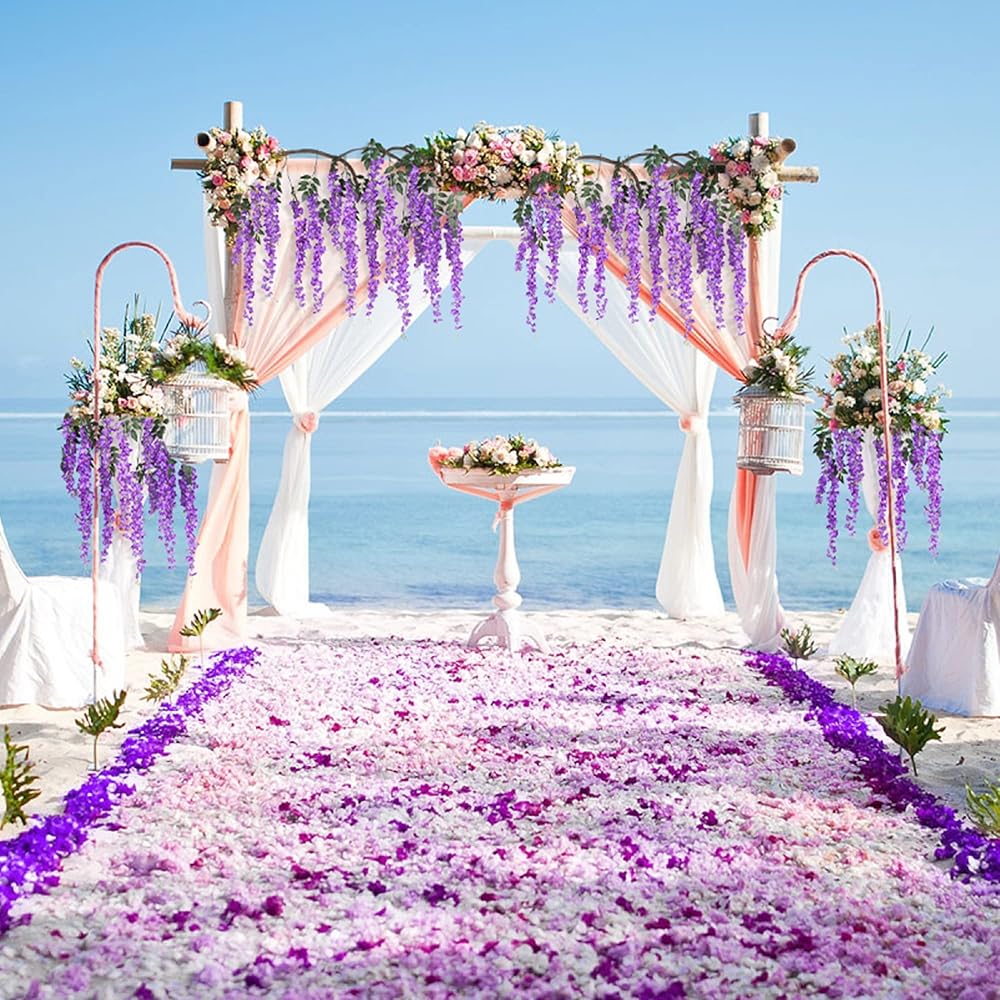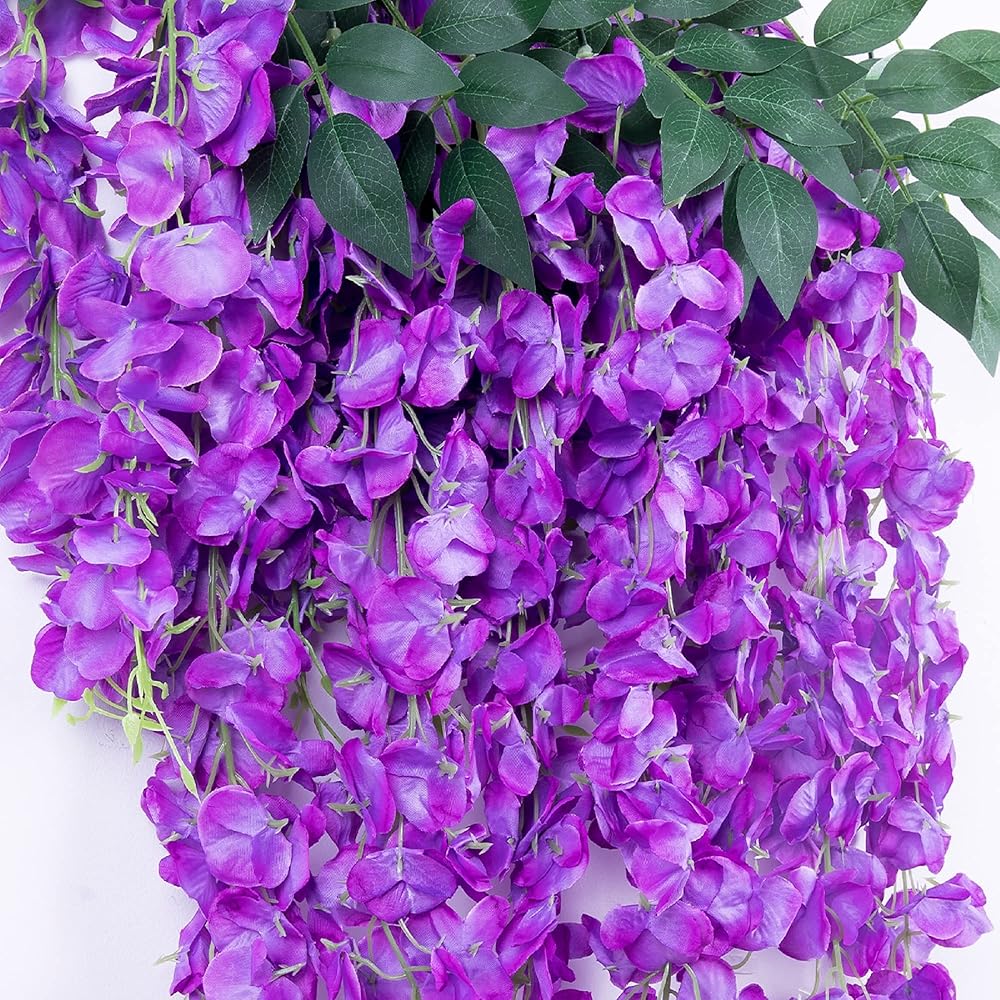 6 عبوات من قطعة واحدة بطول 3.2 قدم من الحرير الاصطناعي الوستارية الكرمة راتا المعلقة على شكل زهرة حريرية لحفلات الزفاف والمنزل والمكتب ومساحة الحفلات DIY، أرجواني