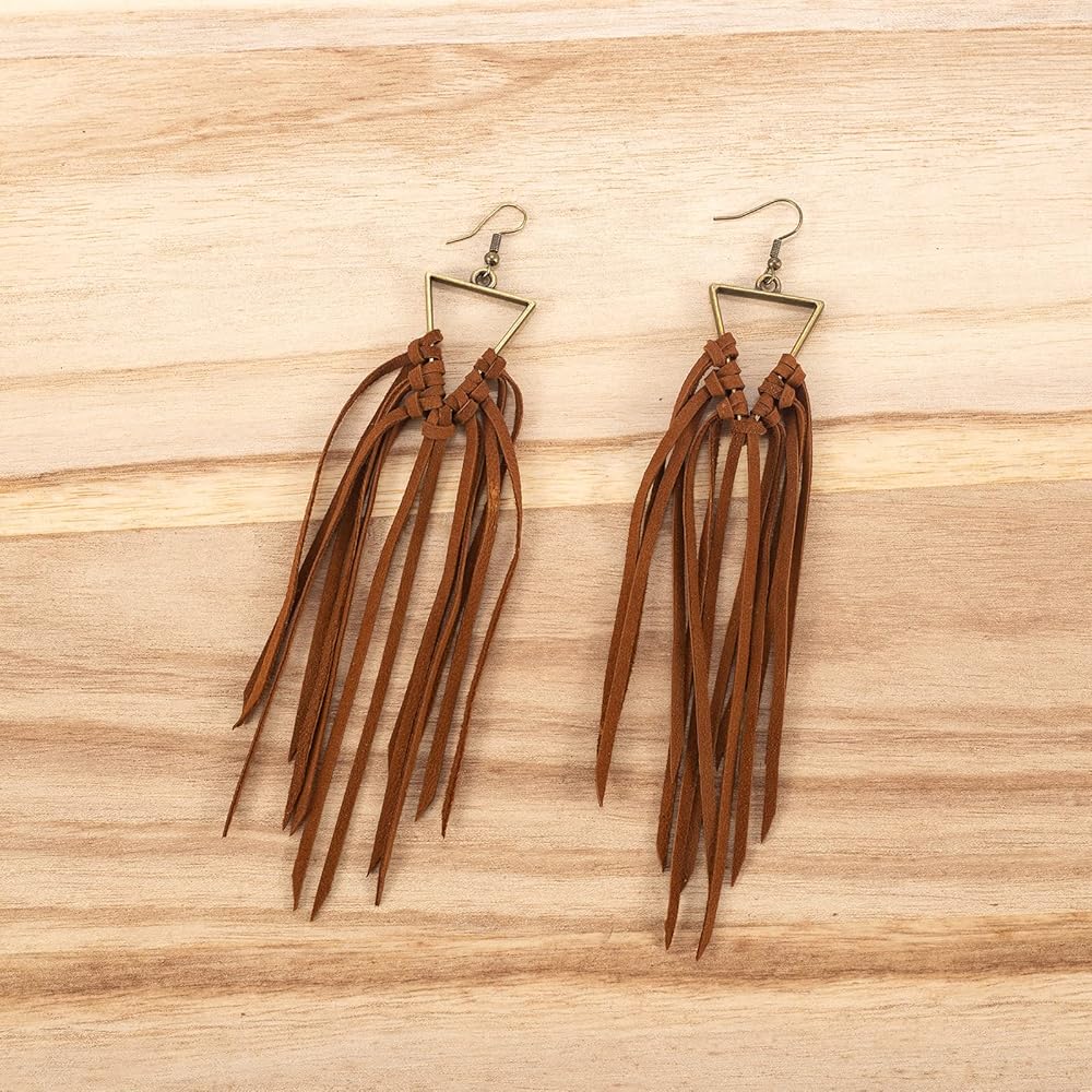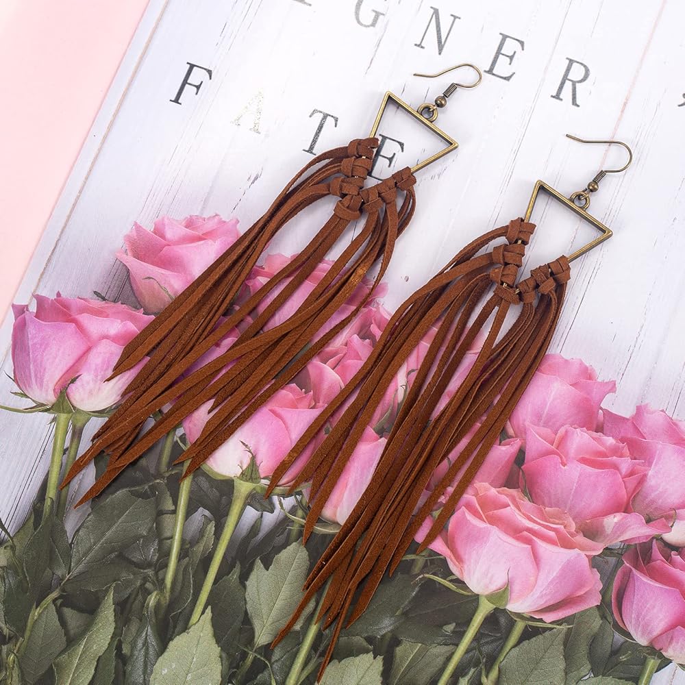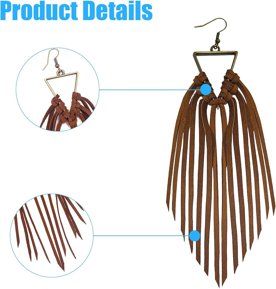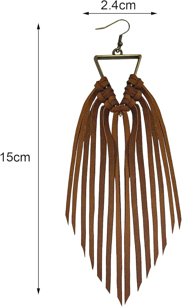 أقراط بوهو للنساء: أقراطنا ذات الشراشيب للسيدات مصنوعة من سبائك الزنك مع مادة جلدية، خالية من الرصاص والنيكل ولا تسبب الحساسية لبشرتنا وآمنة جدًا للارتداء.