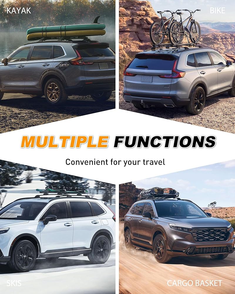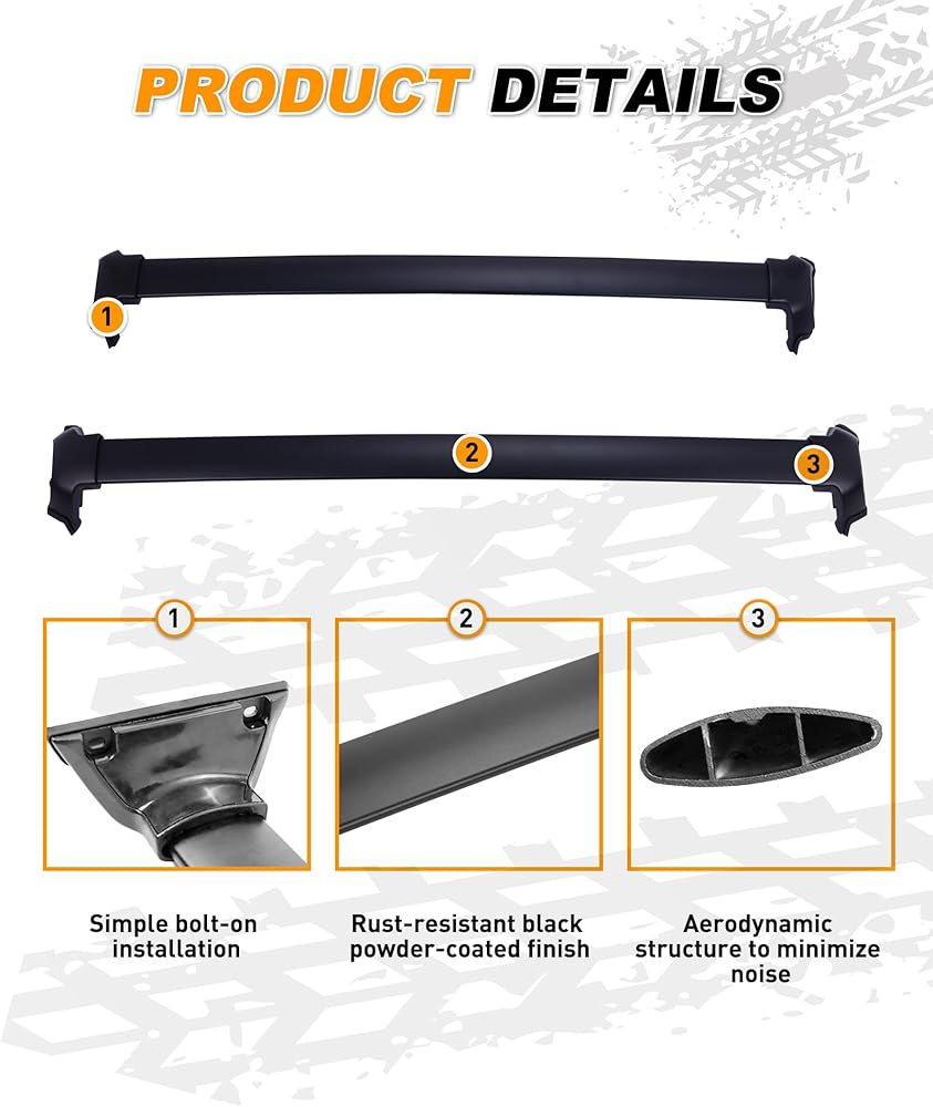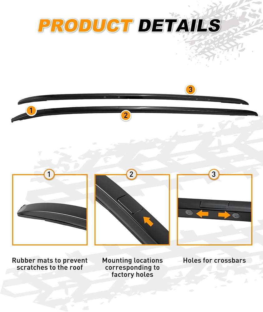 المادة: مصنوعة من سبائك الألومنيوم عالية الجودة، ورفوف السقف والقضبان المتقاطعة قوية ومتينة مع سعة تحميل قصوى تصل إلى 165 رطلاً.