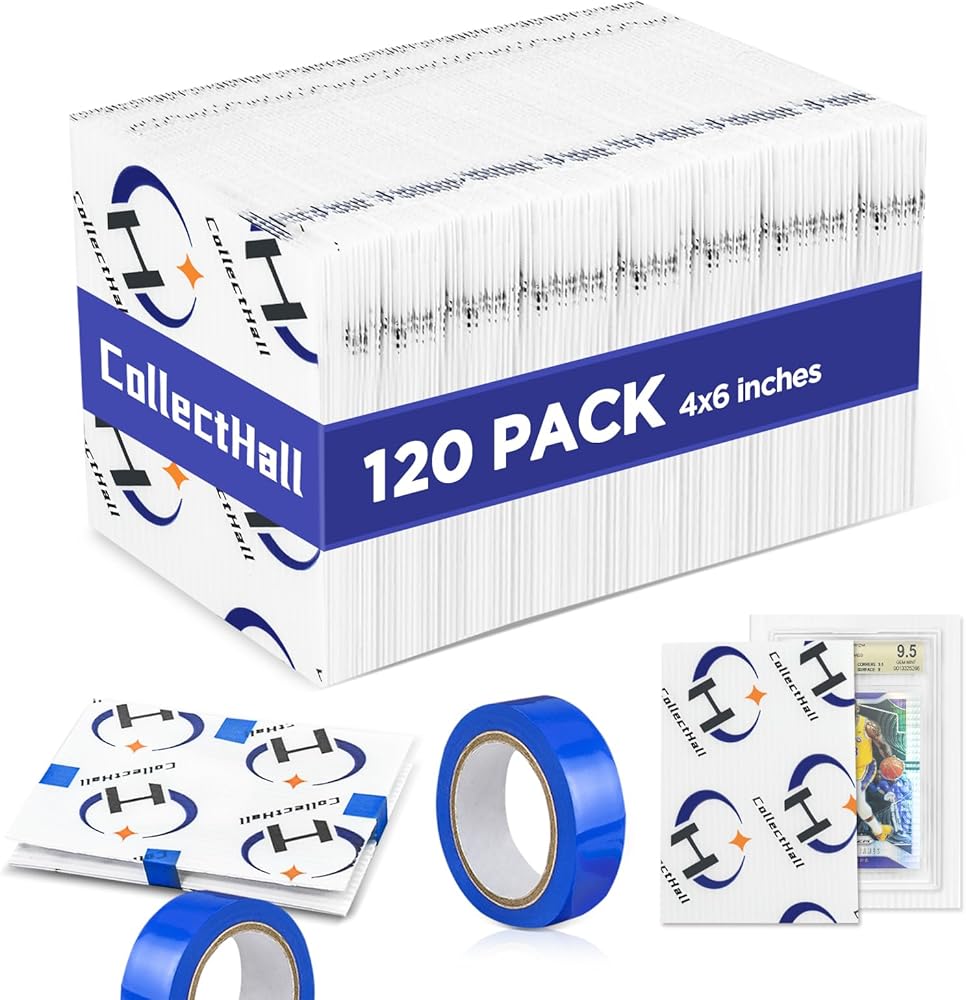 لوحات شحن بطاقات التداول المتدرجة: حزمة قيمة مكونة من 120 قطعة + 1 لفة من الشريط. مقاس 4 × 6 بوصة، تم تصميم واقيات البطاقات المتدرجة للاستخدام مع ألواح البطاقات، مثل PSA وBGS وSGC والمزيد.