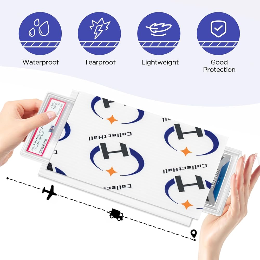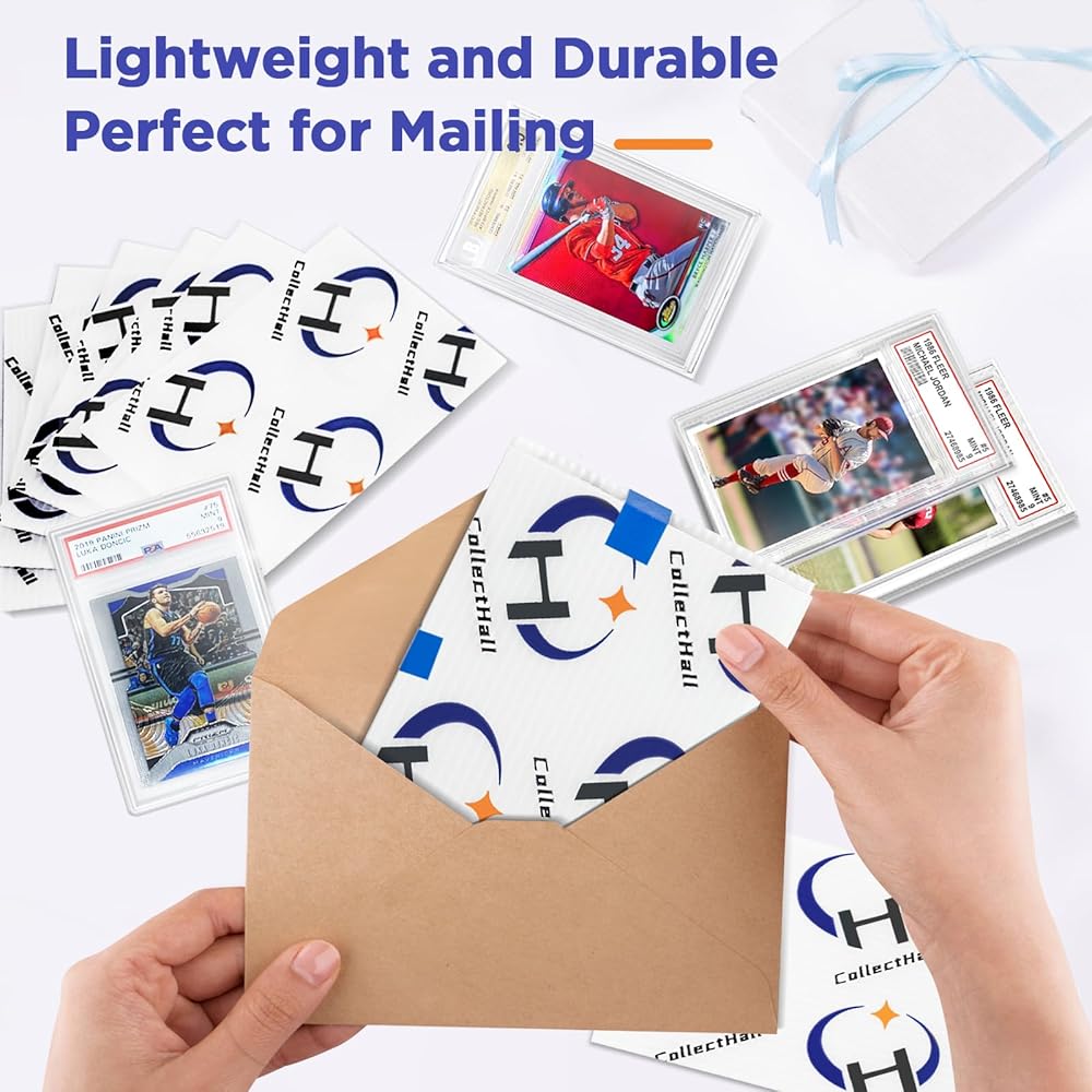 بلاستيك قوي للغاية: مصنوع من بلاستيك مبطن قوي، مادة مثالية لبطاقات البريد والشحن محمية بالكامل. يمكن أن يوفر حماية أفضل مقارنة بألواح شحن المواد الكرتونية. ساعد في تأمين البطاقات المتدرجة القيمة أثناء الشحن!