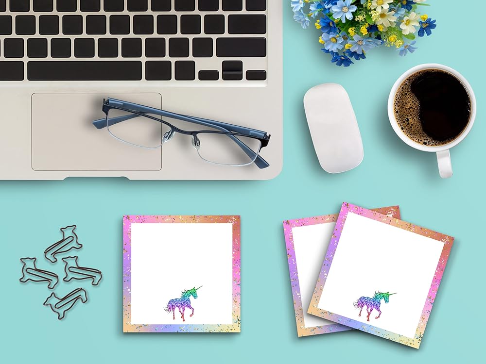 - بتلر في المنزل ملاحظات لاصقة 3 عبوات 3 × 3 بوصة عدد 50 ورقة لكل وسادة، حدود لامعة بألوان قوس قزح وحيد القرن، وسادات مذكرة لطيفة مضحكة، ورق مخطط مجلة القرطاسية