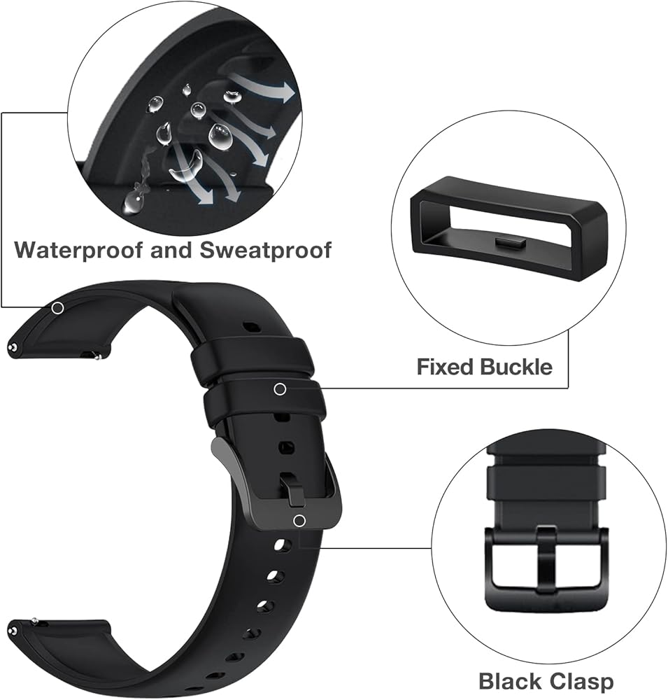 【High Quality】The watchband is made of high-quality environmentally friendly silicone, with smooth surface, dynamic appearance and easy to clean. The soft, flexible and lightweight breathable silicone strap provides a comfortable fit. Waterproof and sweatproof, suitable for sports, leisure and everyday use