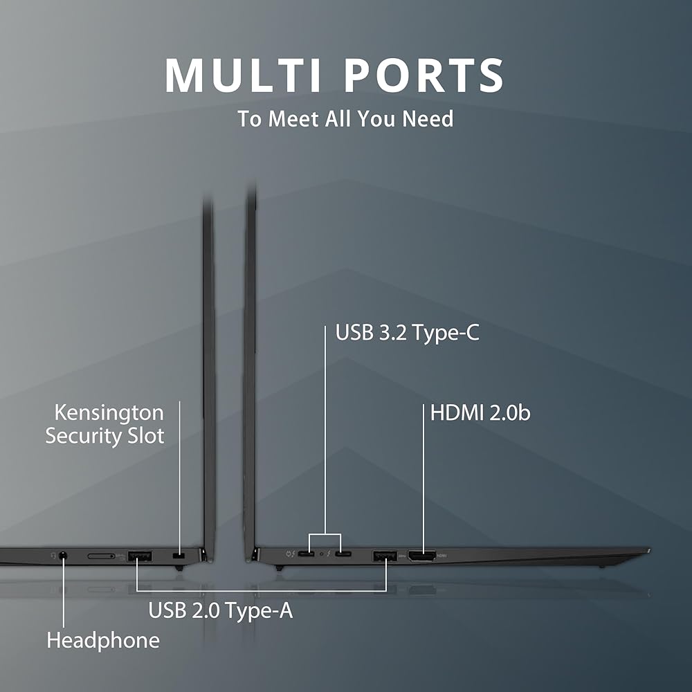 【Windows 11 Pro】Unleash your potential with an operating system tailored to meet professional demands, providing a seamless and secure environment that enhances productivity, streamlines workflows, and delivers essential tools for business success. 【Ports & Accessories】2x USB 2.0 Type-A, 2x USB 3.2 Type-C, 1x HDMI 2.0b, 1x Headphone / mic combo, 1x Kensington Lock. Wi-Fi 6E & Bluetooth 5.2 combo. Bonus 32GB Hotface USB Card.
