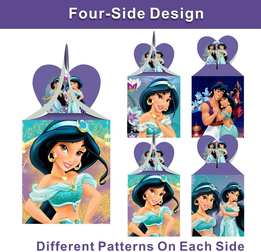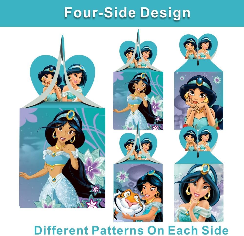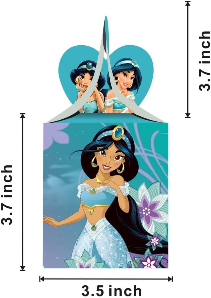 【Package Include】12 Pack Princess Jasmine party favors boxes for birthday party supplies, Video Goodie boxes measure7.5"H x 3.5"W x 3.5"D