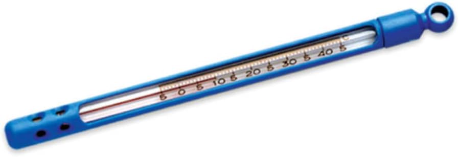 The LaMotte 1066 non-mercury armored thermometer measures temperature from -5 to +45 degrees C in 0.5 degree increments, has a plastic casing with window opening and engraved graduations. This non-mercury thermometer is used for measuring water temperature in an educational setting or water sampling applications. It measures temperature from -5 to +45 degrees C in 0.5 degree increments. The plastic jacket casing helps protect against breakage, and the window opening provides visibility of temperature readings. It has engraved graduations on white tubing for readability. A ring on the plastic casing provides a place to connect a lanyard or line to hold the thermometer in place during tests.