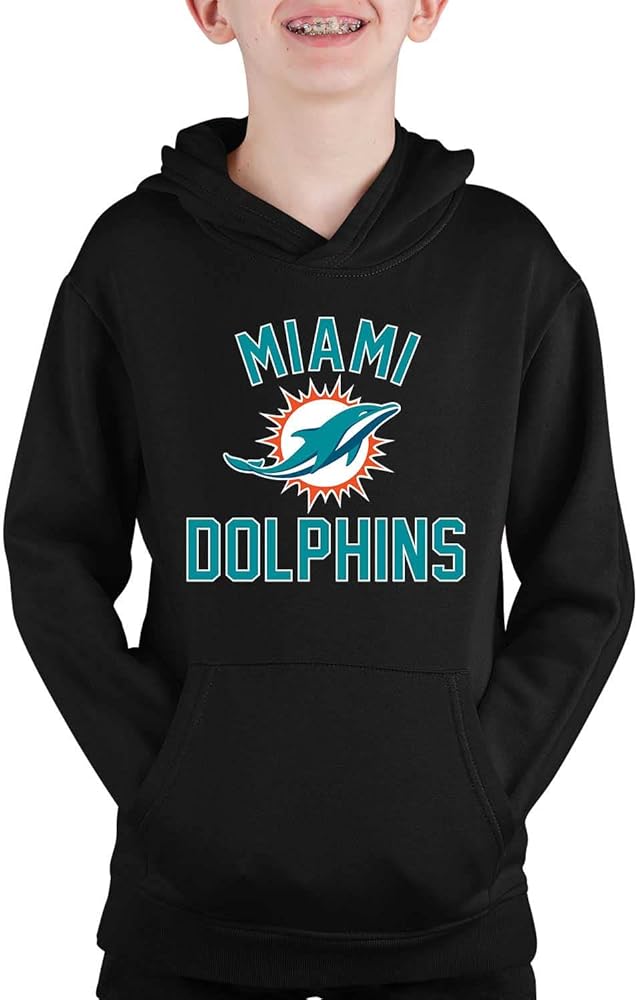 Our youth gameday football pullover hoodie with a front pouch pocket is the ideal sweatshirt to wear on gameday. This hoodie for kids is comfortable and great for showing team pride all year long. This is an essential piece of girls and boys football apparel for pro football fans. Our team-colored hoodie sweatshirts are the perfect fan apparel for school and sports games. This hooded pullover with a pocket and drawstrings is ideal for warm or cold weather games. football pullover hoodie is made from a cotton poly blend material with raglan sleeves. These youth pro football sweatshirts have high quality features. Our youth gameday pullover hoodies feature 1x1 ribbing at cuffs and waistband. This hoodie youth sweatshirt has a twill neck tape. The raglan sleeves add a sophisticated look to these pro football team hoodies for boys and girls. This tagless sweatshirt ensures the most comfortable fit for boys and girls. The standard fit makes our football team hoodies for boys and girls the perfect kids sweatshirt for young fans. The thermal printed graphics are high definition, true to authentic team color, and resist fading. Our hoodies also make the best gifts for boys and girls. Youth football apparel is the perfect birthday gift for any professional sports fan. Our youth football team hoodies for boys and girls are great for wearing to school, the stadium, or while you're watching the game at home.