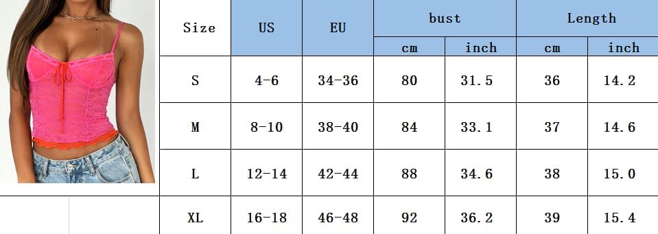 المواد: قميص قصير نسائي بشريط سباجيتي y2k مصنوع من نسيج بوليستر عالي الجودة بنسبة 100%، صديق للبشرة، فائق النعومة، مريح، خفيف الوزن، مسامي، متين، سهل الغسل، ليس من السهل تشويهه، يجعل مشاعرك جيدة.