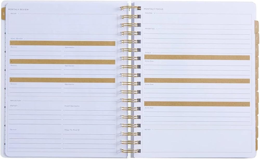 Focus on what matters; Monthly spreads in this planner feature space to keep track of your habits, tasks, notes, and previous or next month overviews, making it easy to see your progress at a glance