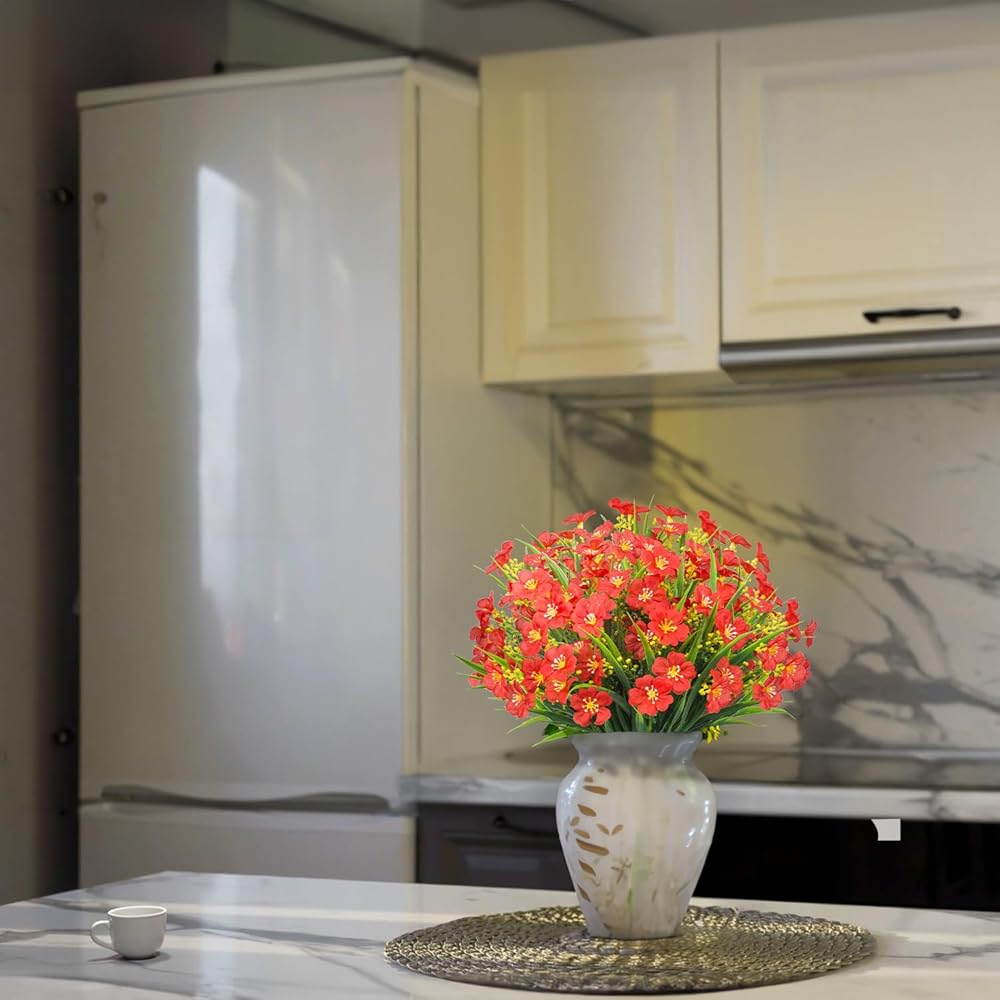 Natural Charm, Zero Maintenance: Enjoy the breath of nature with lush artificial flowers and greenery stems that require no watering or upkeep. Perfect for front porches, walkways, kitchens, windowsills, or as table centerpieces, these faux flowers add a touch of elegance to any space.