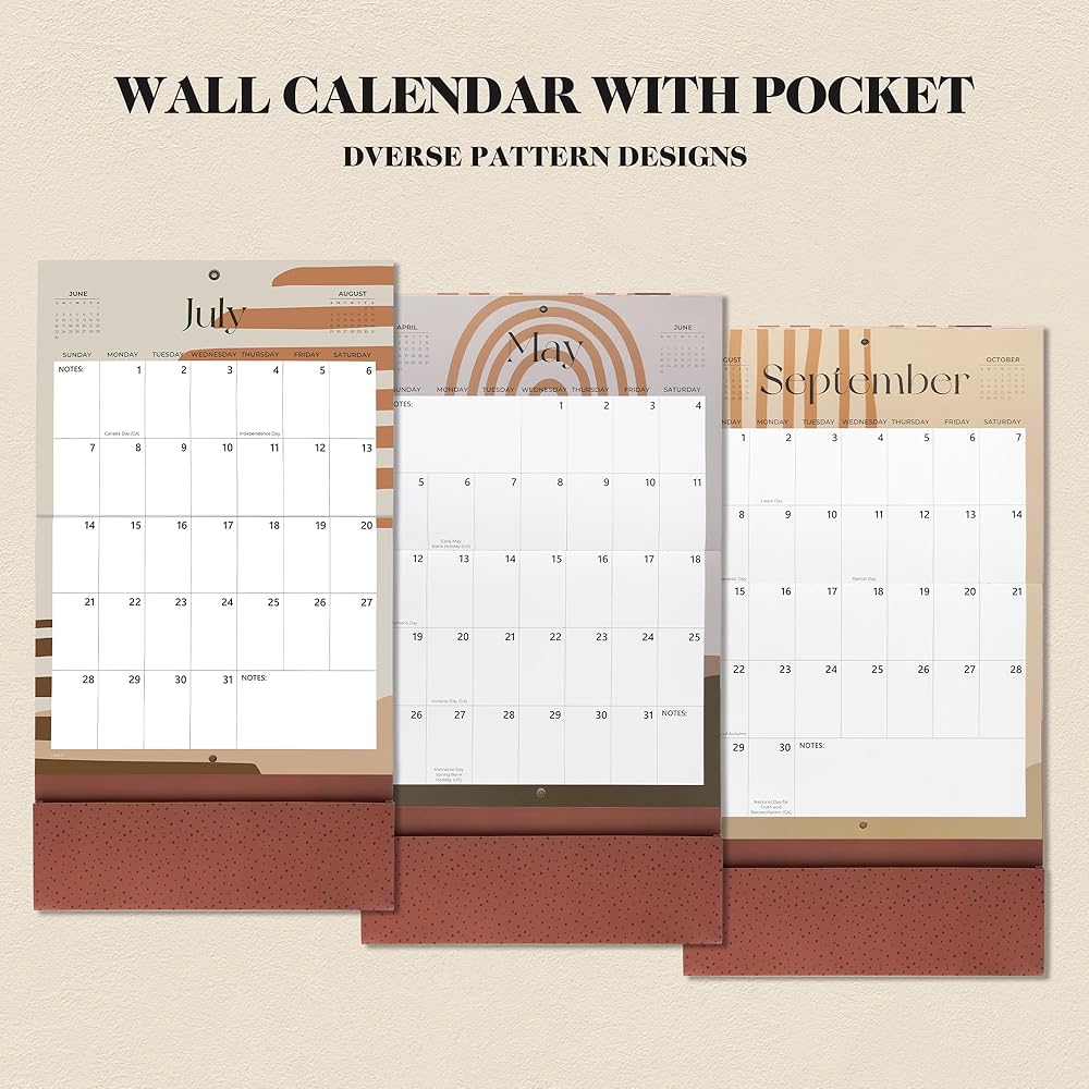 تقويم حائط Cabbrix 2024-2025 مع جيب، تقويم حائط بوهو 2024-2025 من الآن إلى يوليو 2025، 25.5 بوصة × 14.2 بوصة، تقويم حائط شهري كبير للبقالة أو قائمة التسوق، التنظيم والتخطيط
