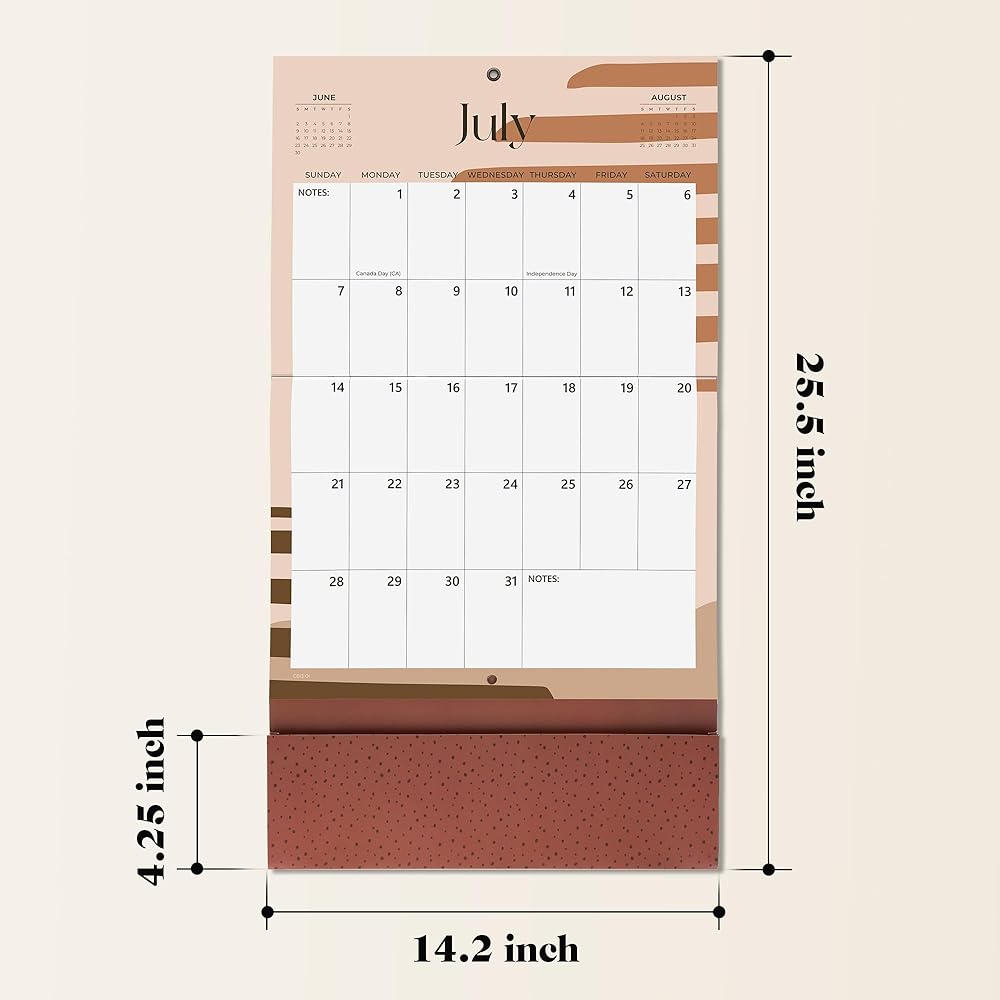 تقويم كبير: يبلغ مقاس مخطط تقويم الحائط 2024-2025 25.5 بوصة × 14.2 بوصة عند فتحه ويبلغ مقاسه 14.2 بوصة × 11.2 بوصة عند إغلاقه.
