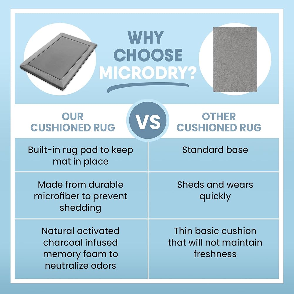 دعم وسادة فائق النعومة - دع طفلك الثمين يجلس أو يستلقي أو يلعب أو يزحف على هذه السجادة الفخمة لغرفة المعيشة. تحتوي سجاد منطقة MICRODRY على إسفنج ذو ذاكرة بسمك 1.27 سم لتوفير حماية عالية الكثافة وتوفير الراحة.