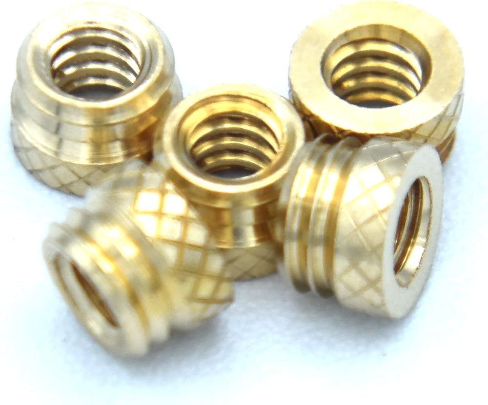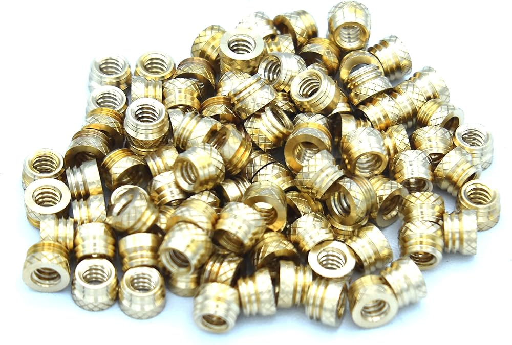 Brass Insert IUB-632, 6-32 Tapered, Thru-Threaded, 5.6 mm OD, 3.8 mm Length, Heat Staking Inserts, 100pcs 3D Printed Parts, Plastic Part Assembly