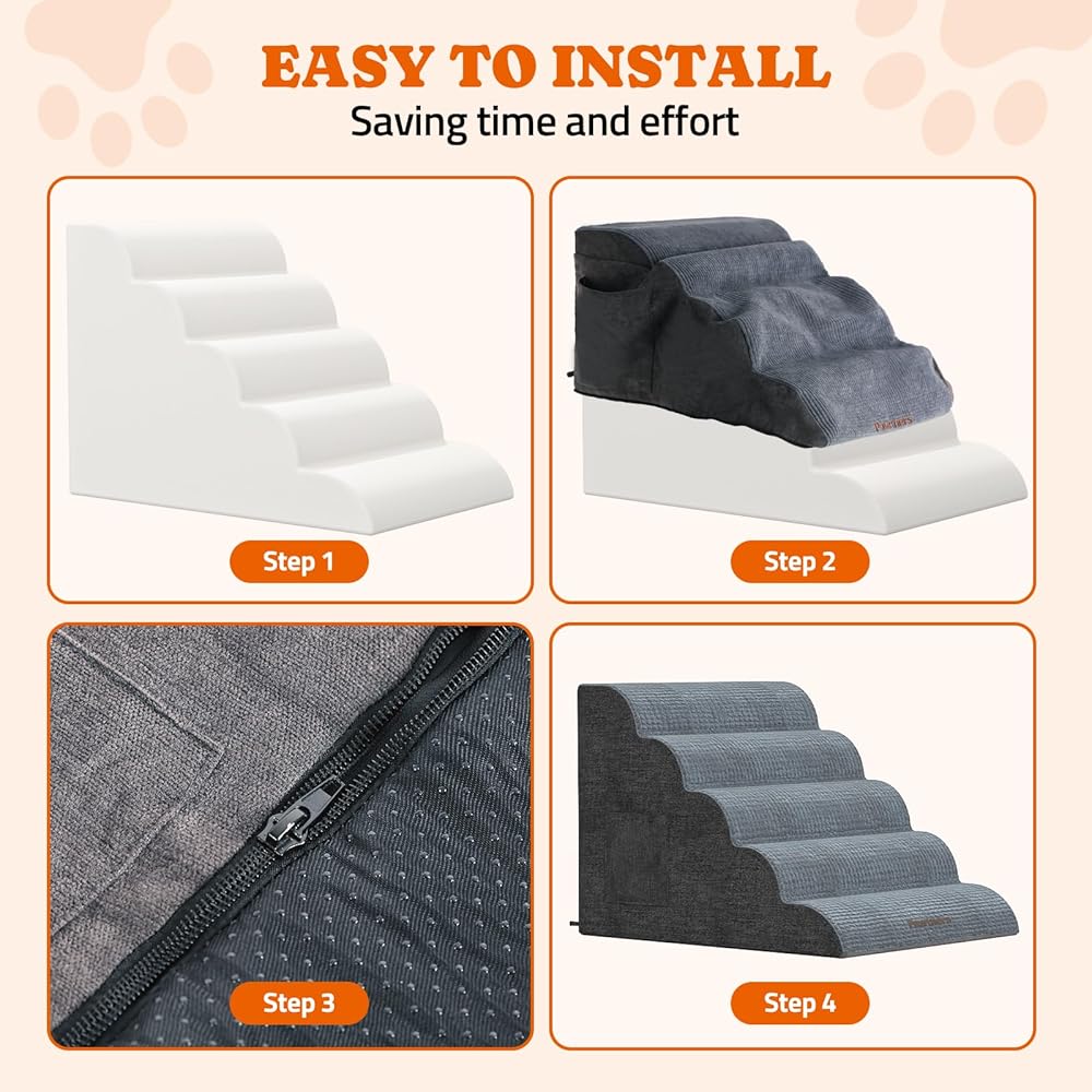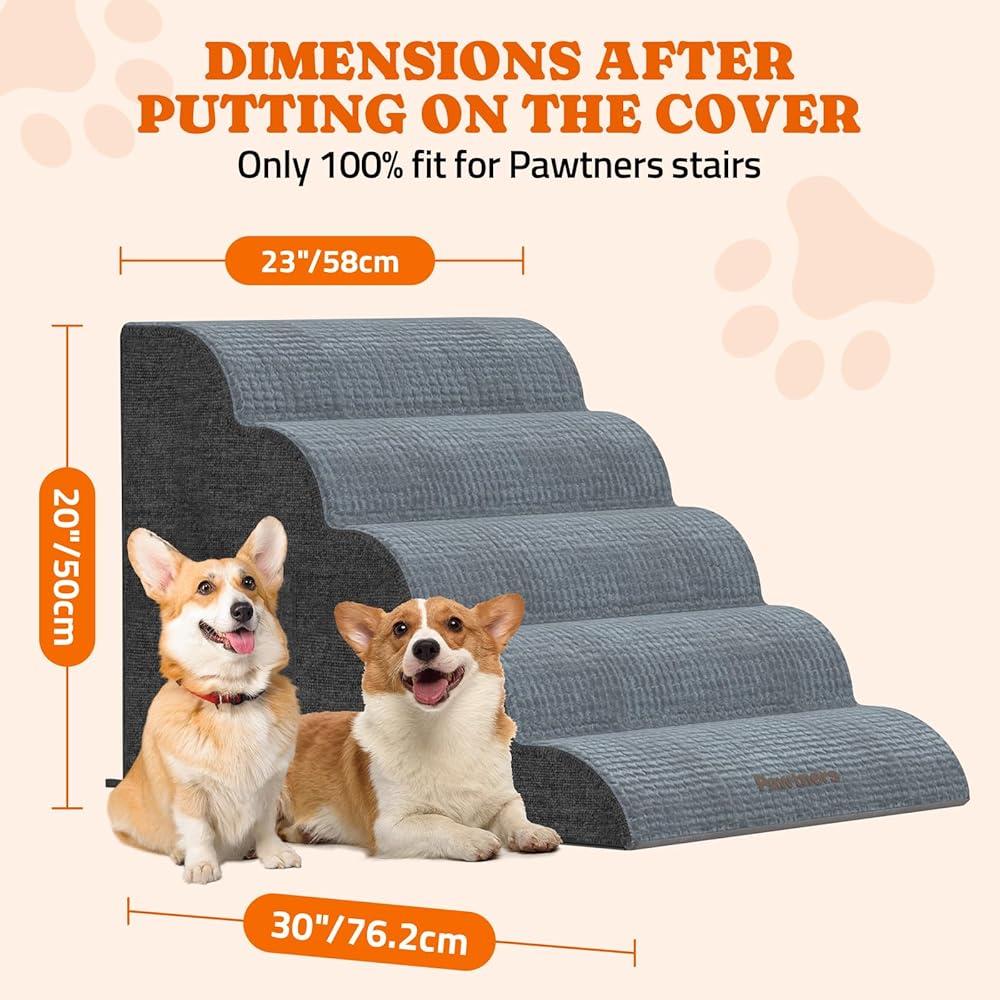 غطاء بديل لسلالم الكلاب من 5 خطوات (يناسب فقط سلالم الكلاب من باوتنر)، غطاء مقاوم للماء وقابل للغسل، مجموعة الملحقات الأصلية - رمادي