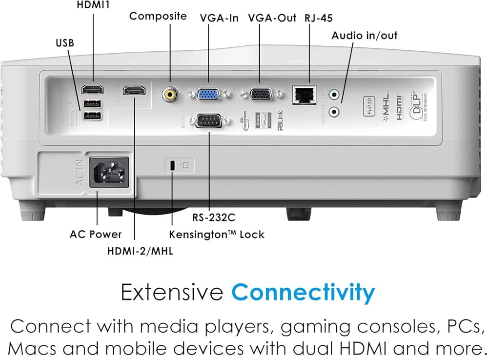 4K HDR INPUT COMPATIBLE - Experience high-quality visuals with bright 3800 lumens, Full HD 1080p resolution, and 500,000:1 contrast ratio. Play games and watch movies with cinematic color featuring bright whites, deep blacks, and rich color.