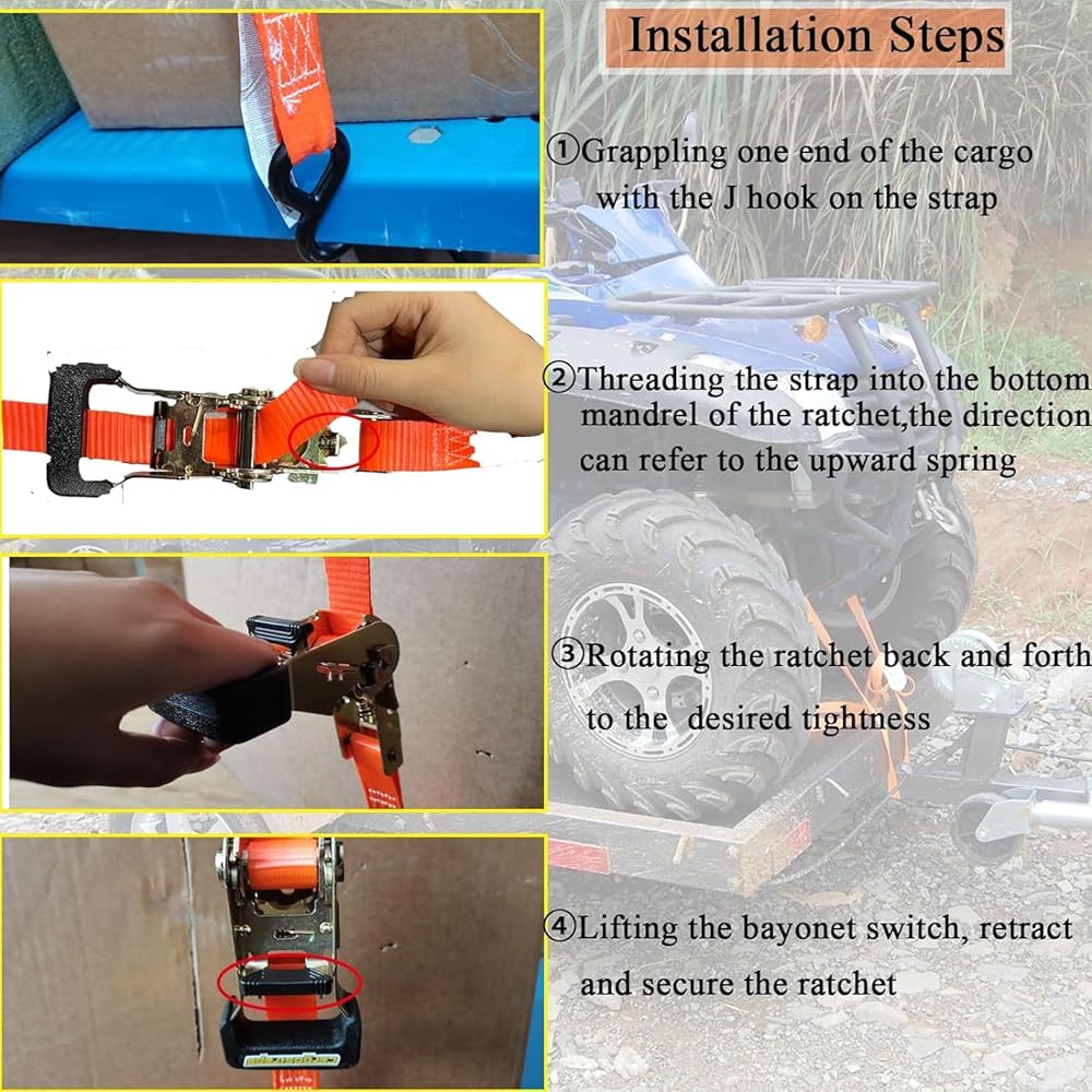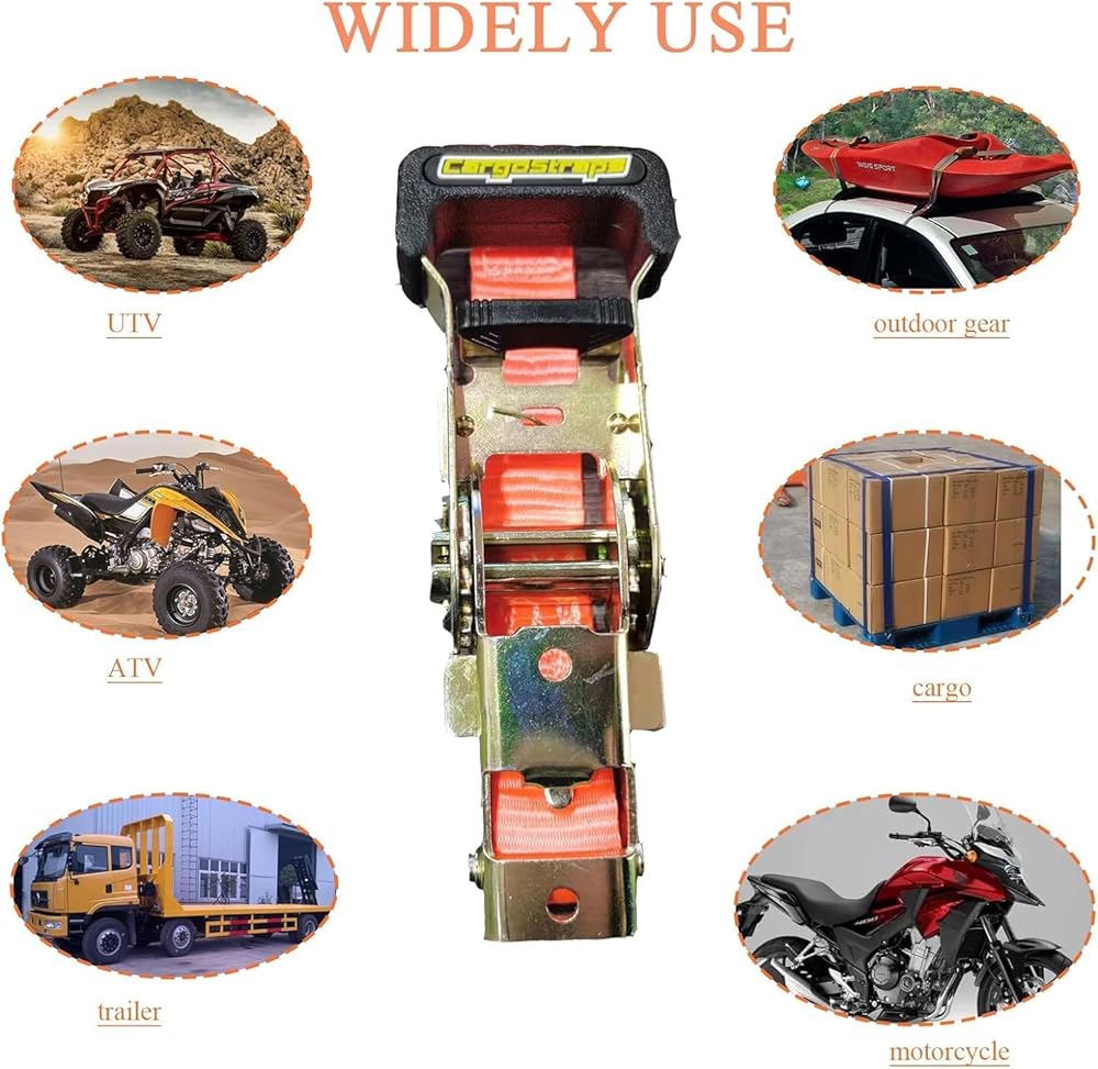 الاستخدام الشامل: توفر أحزمة السقاطة القابلة للسحب من QYMOTO المتانة والأمان لنقل الأشياء، مثل الدراجات النارية، والدراجة، وقوارب الكاياك، وUTV، والقوارب، وATV، والصناديق، والقوارب، والأثاث، والصناديق، ومعدات العشب، والبضائع وما إلى ذلك.