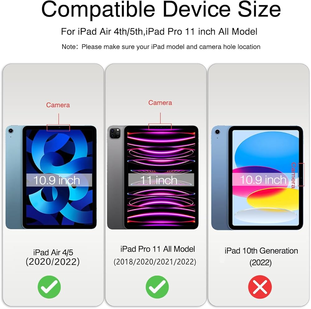 [1+1 PACK]-This product includes 1 pack Anti Blue Light screen protectors and 1 pack camera lens protectors.Compatible with iPad Air 5 gen 2022 release, iPad Air 4 gen 2020 release, and all models of iPad Pro 11- inch (2022/2021/2020).Not available for other models