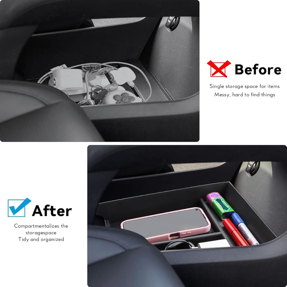【سهلة التركيب】تركيب سريع وسهل لدرج وحدة التحكم المركزية بدون أدوات. ما عليك سوى وضع الدرج في الجزء السفلي من الكونسول المركزي الأصلي.