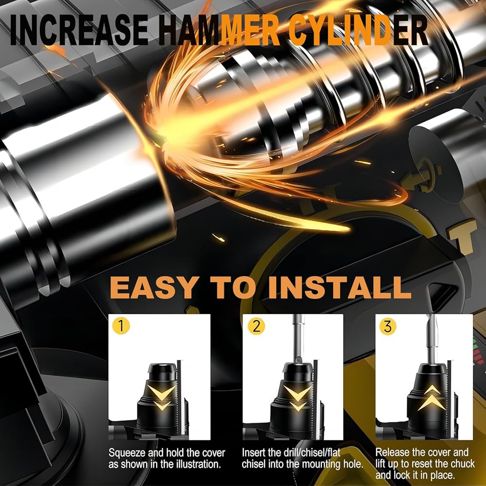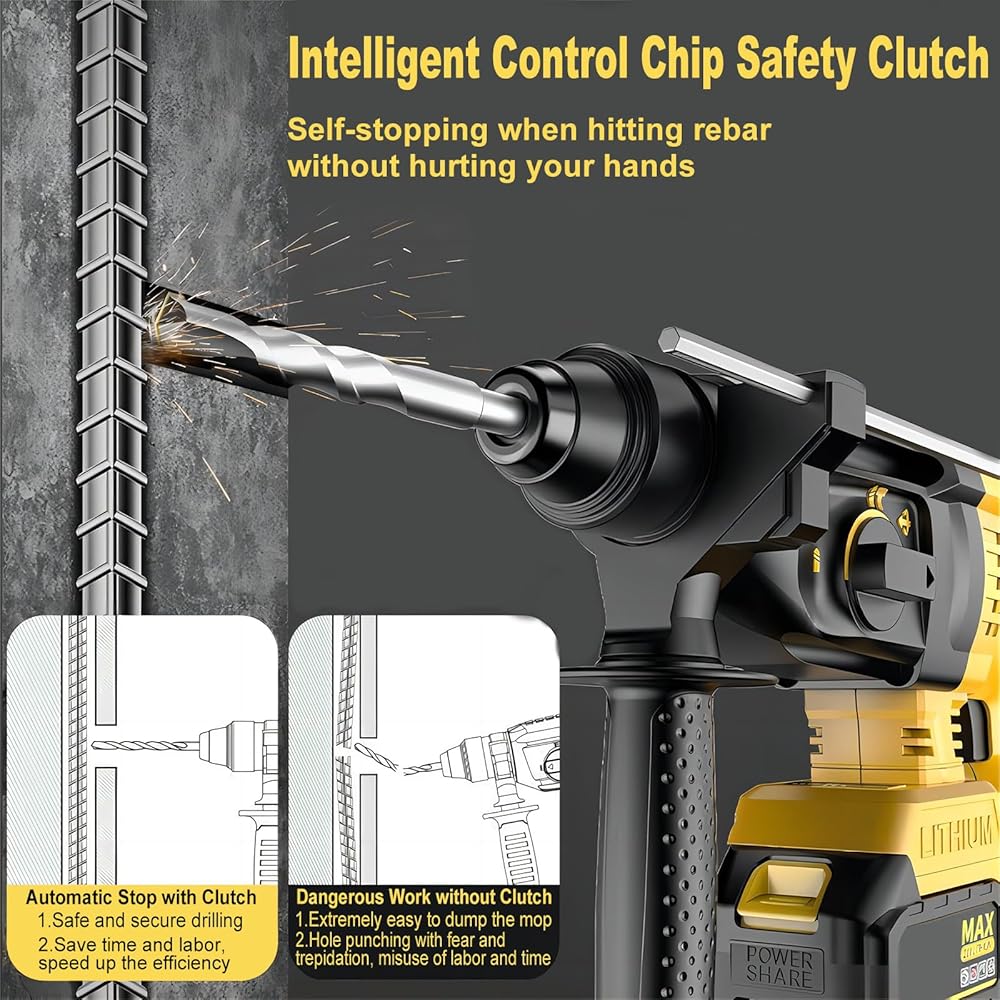 【Ergonomic Design】 Our design highlights a 360° premium handle and metal depth gauge that minimizes fatigue, enhances your experience, and ensures precise drilling depths.The SDS plus chuck system allows for quick, tool-less bit changes and ensures seamless operation. Optimized convenience for you. And at only 6 pounds, it's perfect for overhead or downward drilling.