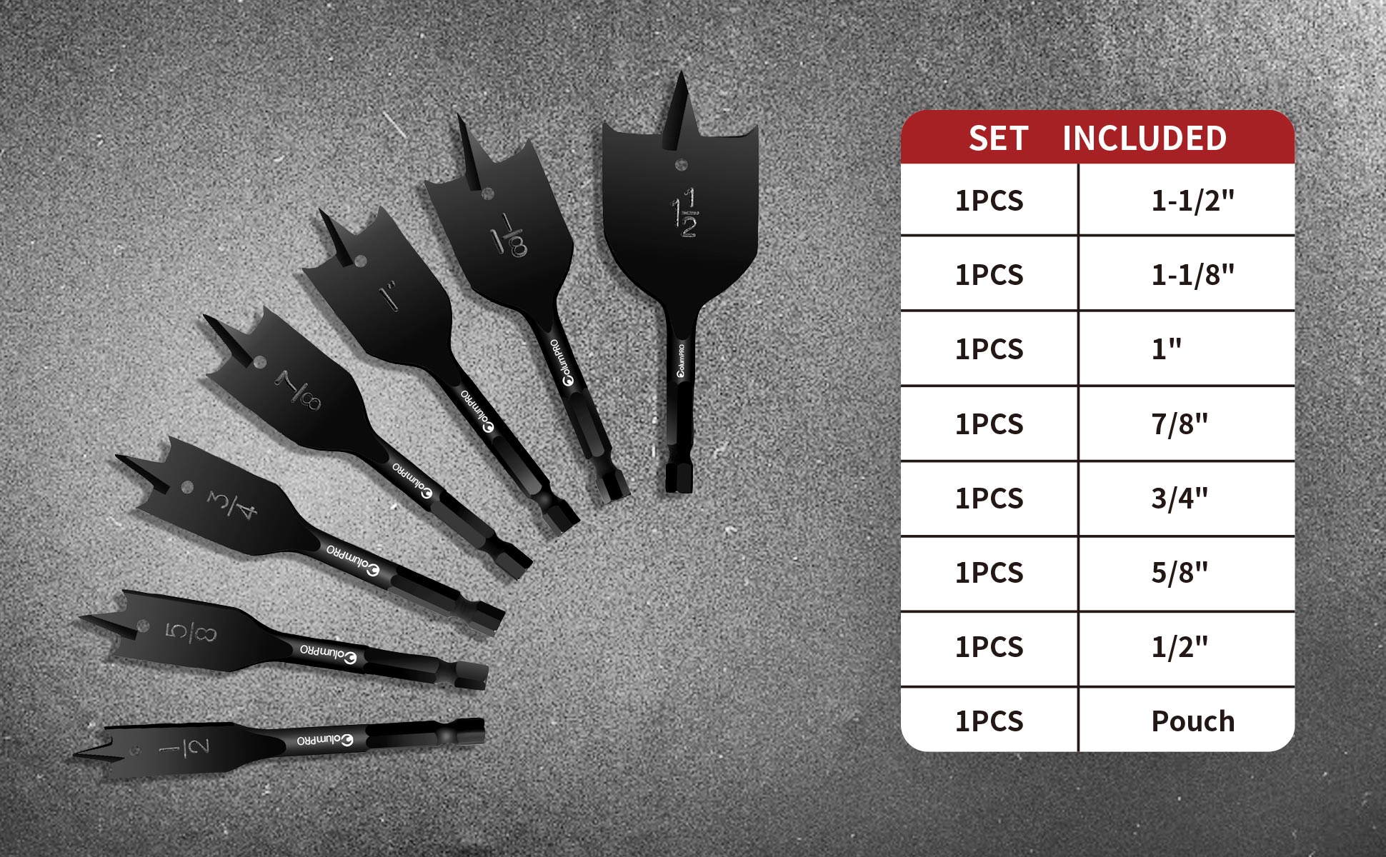 【مجموعة شاملة】- تأتي المجموعة مع حقيبة تخزين من النايلون لسهولة التخزين والاحتياجات المحمولة. تحتوي المجموعة على 7 أحجام مختلفة من رؤوس المثقاب القصيرة، بما في ذلك كل منها 1/2 بوصة، 5/8 بوصة، 3/4 بوصة، 7/8 بوصة، 1 بوصة، 1-1/8 بوصة، 1-1/2 بوصة حجم لقم الثقب. إنه خيار مثالي لعمال الخشب المحترفين والكهربائيين والمقاولين وعشاق الأعمال اليدوية.