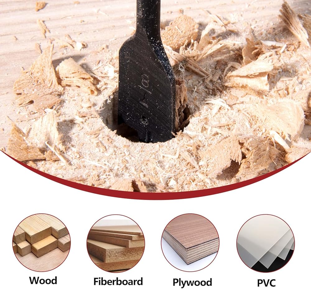 【ساق التغيير السريع】- تتميز مجموعة لقم الثقب ذات فتحة المجداف للأعمال الخشبية بساق سداسية قياسية سريعة التغيير مقاس 1/4 بوصة وأخدود للتثبيت بأمان. مناسبة لمحركات الصدمات، والمثاقب الكهربائية، ومفاتيح الصدمات. يسمح التصميم الخاص بإزالة الرقائق بشكل أسرع، مما يقلل من الاختراق ويقدم نتائج أفضل في وقت أقل.