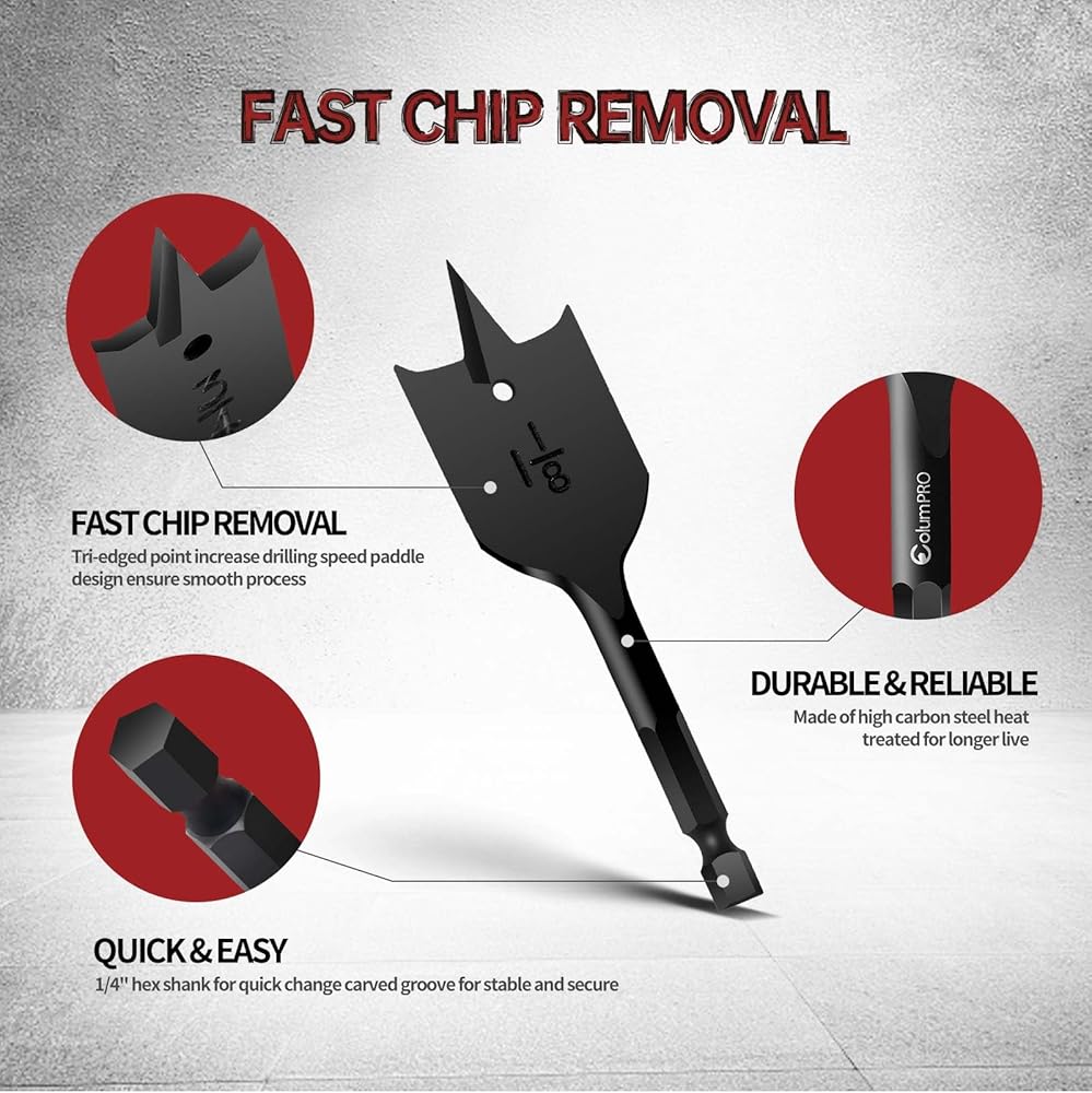【جودة ممتازة】- مجموعة رؤوس المثقاب المجرف من ColumPRO مصنوعة من الفولاذ عالي الكربون مع المعالجة الحرارية، مما يضمن عمر خدمة طويل ومقاومة للتآكل. تعمل حافة القطع الحادة على تعزيز الكفاءة، مما يوفر لك الوقت عند العمل مع الكثير من الخشب في وقت واحد. يوفر الجسم القصير صلابة إضافية للمتانة وتحويل عزم دوران أعلى للحصول على أداء أفضل.