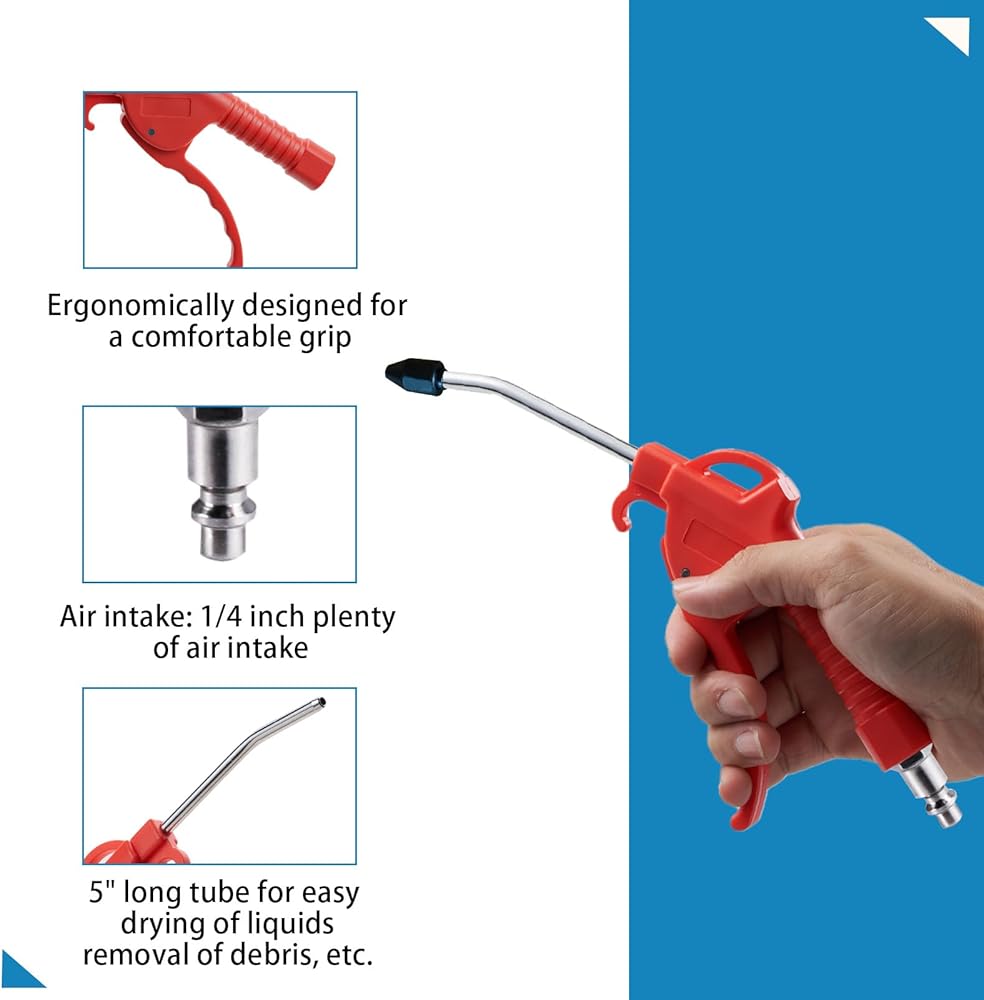 مسدس نفخ الهواء، مسدس نفخ فوهة هواء 4 بوصات، ملحقات ضاغط الهواء وأداة تنظيف إزالة الغبار (عبوة واحدة)