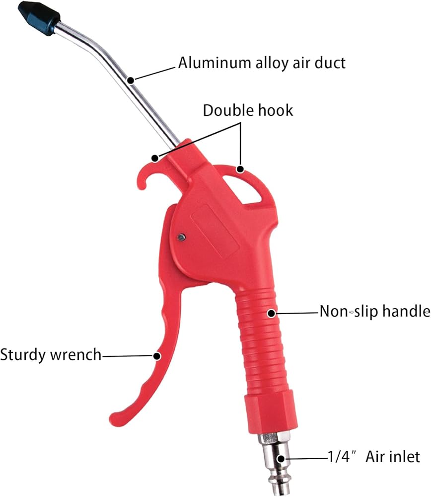 • مسدس نفخ الهواء مناسب لنفخ الغبار والماء والمساحيق والحطام ومختلف عمليات التنظيف الصناعية أو المنزلية وعمليات النفخ واستخدام السيارة.