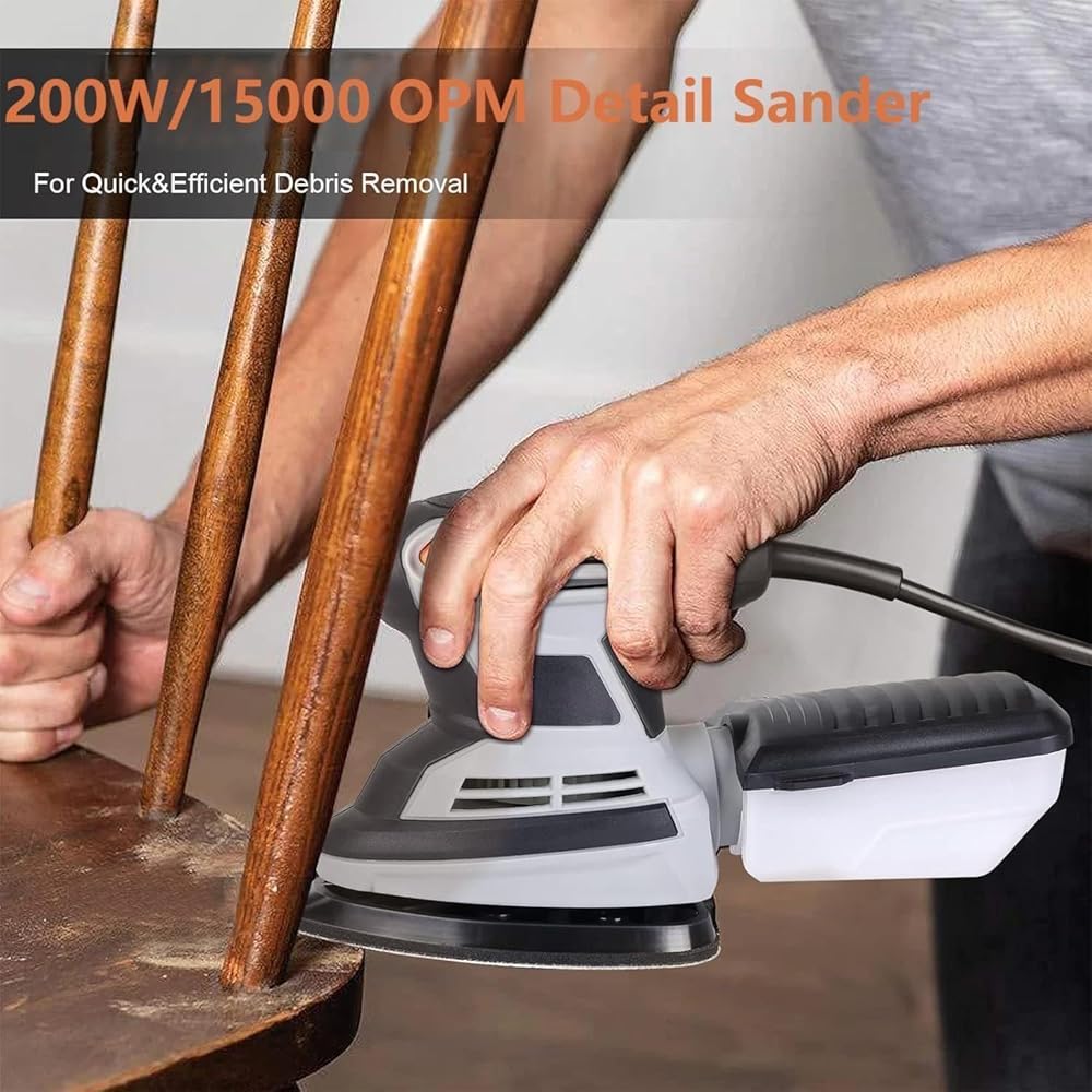ماكينة صنفرة التفاصيل 15,000 OPM ماكينة صنفرة أعمال خشبية مدمجة مع مجمع الغبار و12 قطعة من ورق الصنفرة للمساحات الضيقة ووظائف الأعمال الخشبية الاحترافية