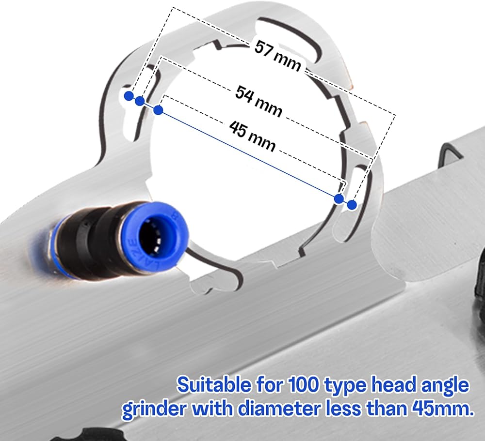 - التوافق: مصمم لمطاحن الزوايا من النوع 100 بقطر دوران أقصى يبلغ 45 مم، يضمن حامل المطحنة الزاوية هذا ملاءمة آمنة ودقيقة، مما يجعله مناسبًا لمجموعة واسعة من المطاحن الزاوية.