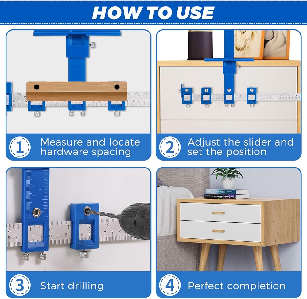 【استخدام واسع】سيكون دليل المثقاب الخاص بنا هو أفضل مساعد لعمال الخشب أو الأعمال اليدوية. تعتبر أدوات الخزانة مثالية لتثبيت المقابض أو المقابض على الأدراج والخزائن والأبواب وما إلى ذلك والتطبيقات الأخرى التي تتطلب تحديد المواقع وحفر الثقوب.