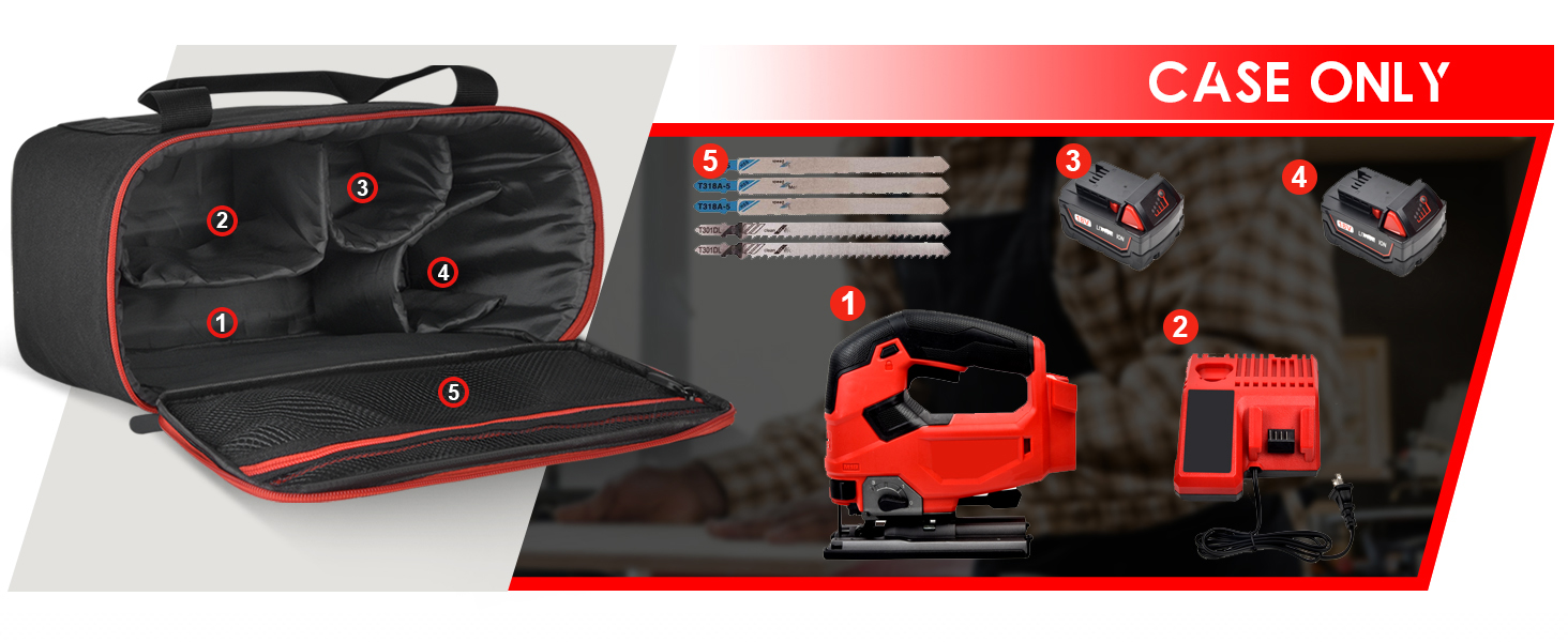 لحقيبة أدوات ميلووكي: تم تصميم صندوق تخزين أدوات ميلووكي m18 لأداة ميلووكي M18 للوقود D-HANDLE JIG SAW BARE TOOL. تم تحسين حقيبة ميلووكي M18 لتكون ذات سعة أكبر، مما يسمح لها لاستيعاب ليس فقط منشار ميلووكي ولكن أيضًا الملحقات الإضافية مثل بطاريات ميلووكي، وشاحن ميلووكي، ومنشار ميلووكي. (حقيبة تخزين فقط، لا تشتمل على منشار الصور المقطوعة وملحقاتها)