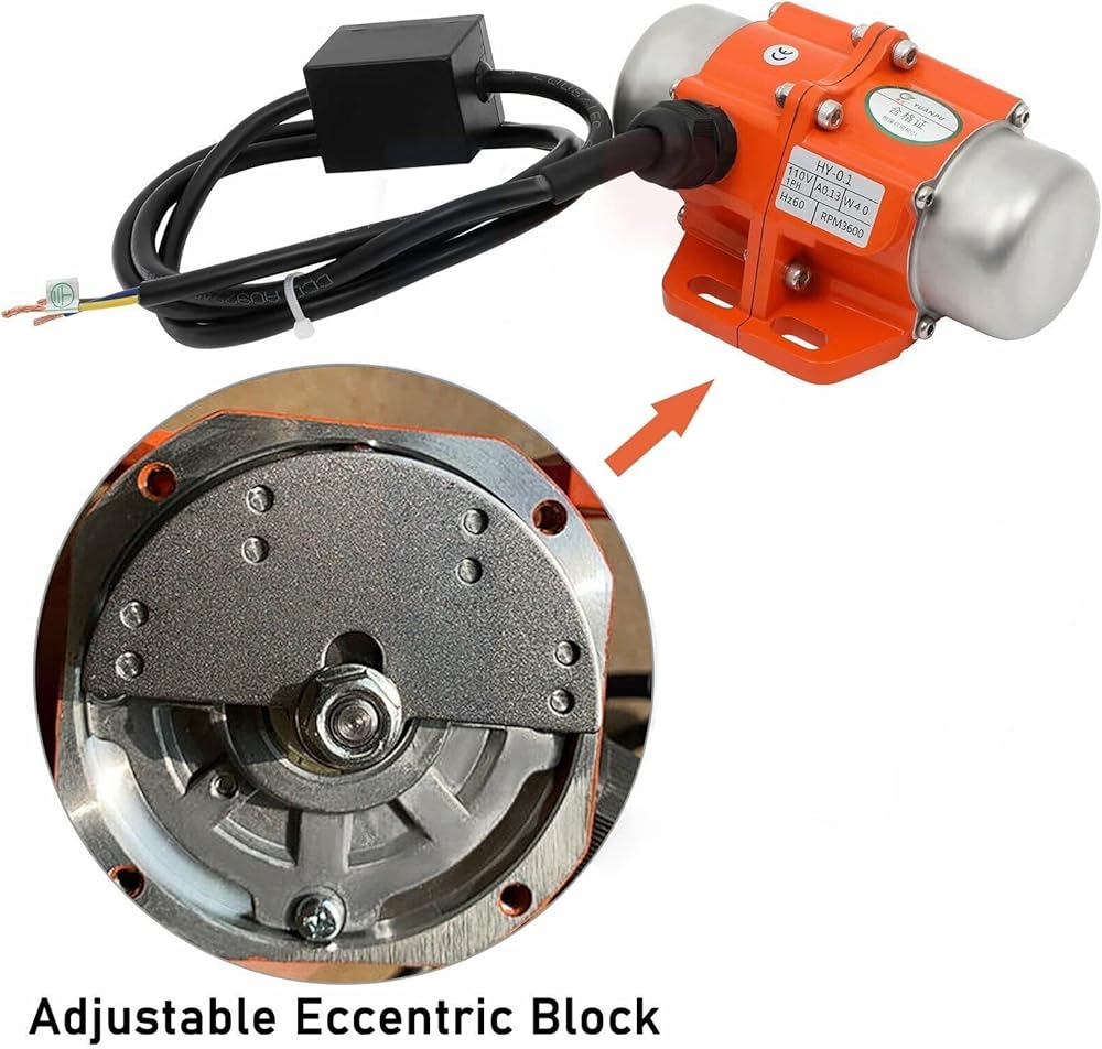 • Vibrating motor designed to operate on a single-phase AC 110V electric power supply, easy to use in a variety of settings