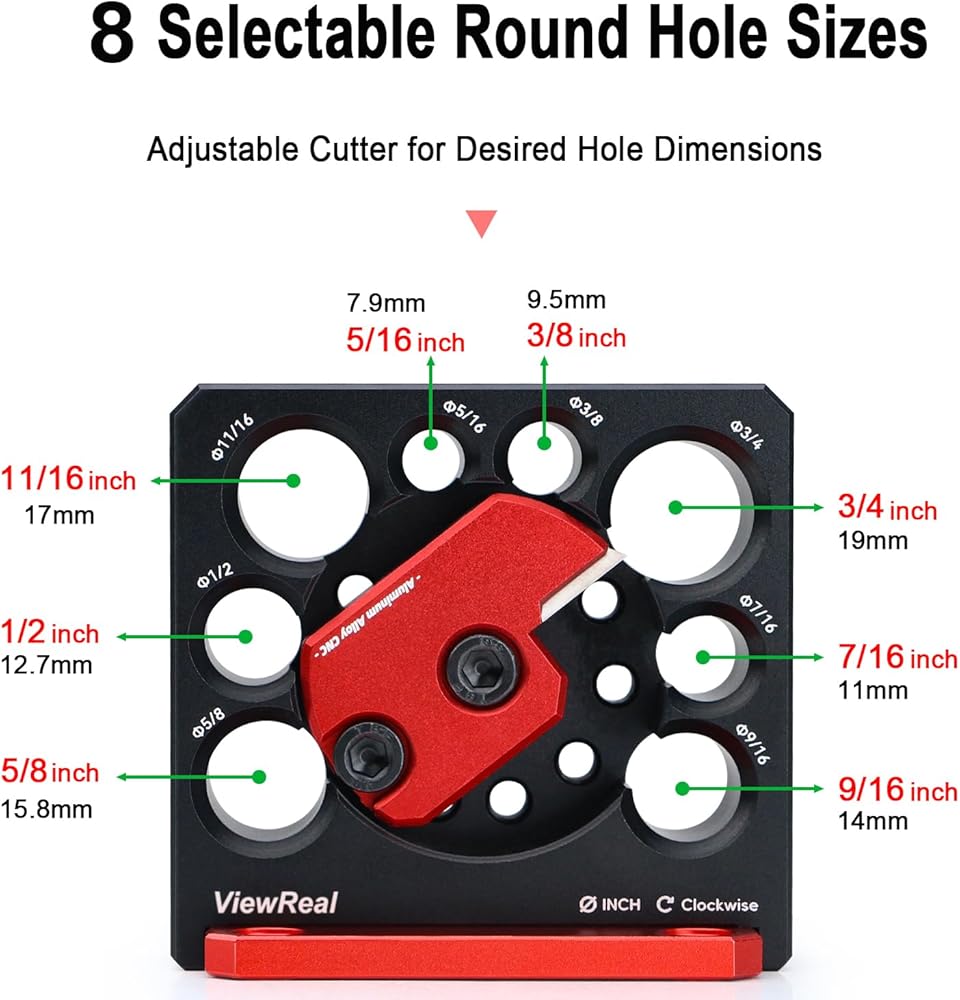 مقاسات متعددة الاستخدامات: تتميز بـ 8 فتحات بزيادات 1/16 بوصة، وتتراوح قاطعة الأوتاد المدمجة هذه من 5/16 إلى 3/4 بوصة، مما يلبي مجموعة متنوعة من مهام الأوتاد بسهولة ودقة.