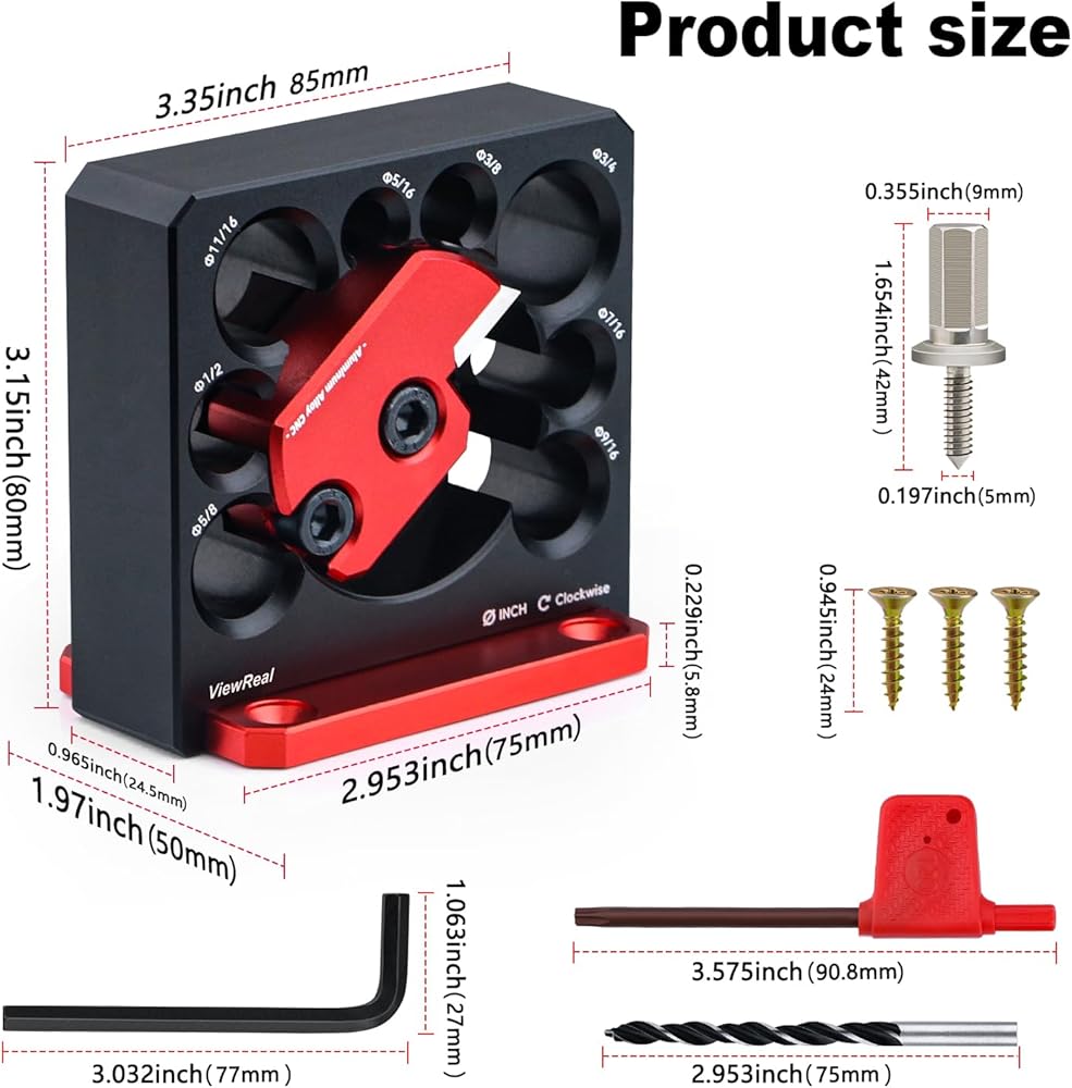 طقم أدوات صنع الأوتاد مكون من 8 قطع مع حشوات من الكربيد - قاطع وتد من سبائك الألومنيوم الدقيق للأعمال الخشبية، حجم إمبراطوري 5/16-3/4 بوصة مع أداة تحويل رأس الوتد
