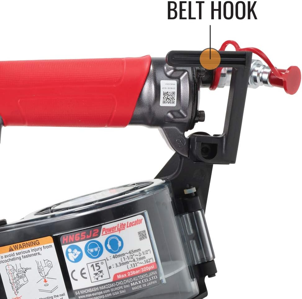 Native to the safety equipped PowerLite® platform, the HN65J2 is the professional joist hanger nailer designed to carry out work around hurricane ties, joist hangers, foundation anchors and more. With its powerful 500 PSI compatibility and durable positive placement tip, users have the reliability and accuracy to shoot nails in a smooth and even fashion. Outfitted with a sequential fire trigger and the ability to drive fasteners from 1-1/2” to 2-1/2” in length, users will find that its versatility, lightweight handing (4.6 lbs) and reduced exhaust air system make its handling extremely user friendly for continuous use all day long. MAX is committed to manufacturing reliable tools that have been designed to deliver enhanced performance while making sure that users can carry out safe operations.