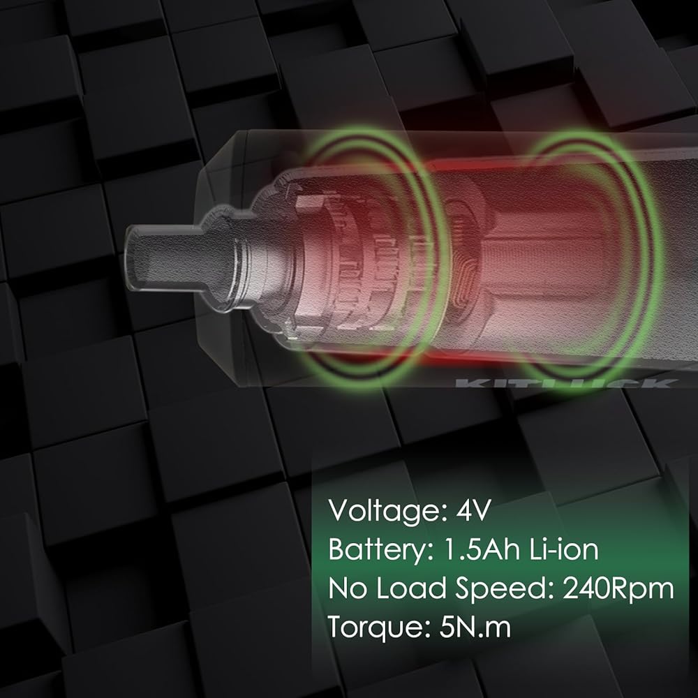 ⚙️【سهل ومريح في الاستخدام】تم تجهيز مفك البراغي الكهربائي KITLUCK بمستوى عزم دوران يبلغ 5 نيوتن متر ويمكن استخدامه لمجموعة واسعة من مهام الشد. يمكن أيضًا تبديل وضع الأمام والتحرير على الفور عن طريق لمس الزر الأوسط. سيتم تشغيل ثلاثة مصابيح LED في نفس الوقت عندما يعمل مفك البراغي الكهربائي الصغير.