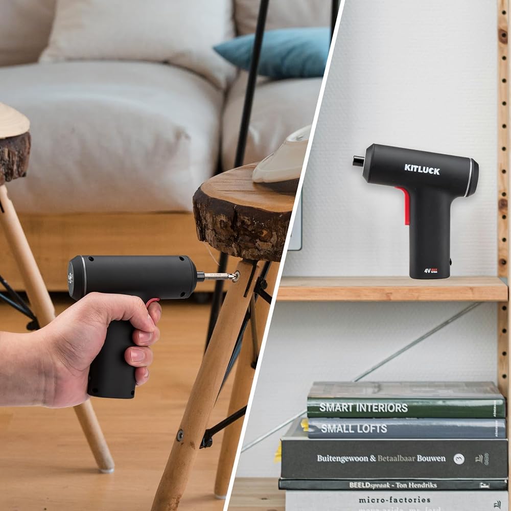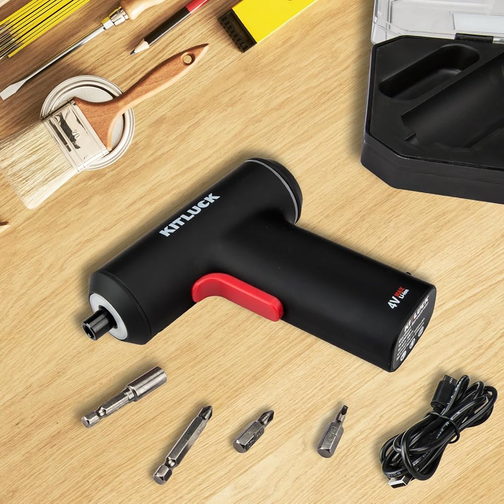 ⚙️【صغير الحجم لتطبيقات واسعة】يحتوي مفك البراغي اللاسلكي KITLUCK ذو التصميم المتوافق مع البشر على حجم مفك براغي يدوي ومقبض مريح. إن ميزاته المدمجة وخفيفة الوزن والمحمولة والمتينة تجعل مفك البراغي الكهربائي الصغير هذا مثاليًا لسهولة الحمل والتخزين في كل مكان، وهو أداة مثالية للإصلاح الكهربائي، وتجميع الأثاث الخفيف، وتركيب المفاتيح، والمشروعات اليدوية، وإصلاح الدراجات، والصيانة الكهربائية، إلخ.