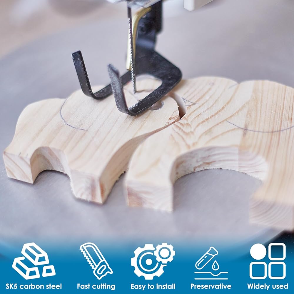 【Strong & Durable】These scroll saw blades are made of high-quality SK5 high carbon steel material, with high hardness and wear resistant, making them highly durable, precise cutting, rugged, and long-lasting.
