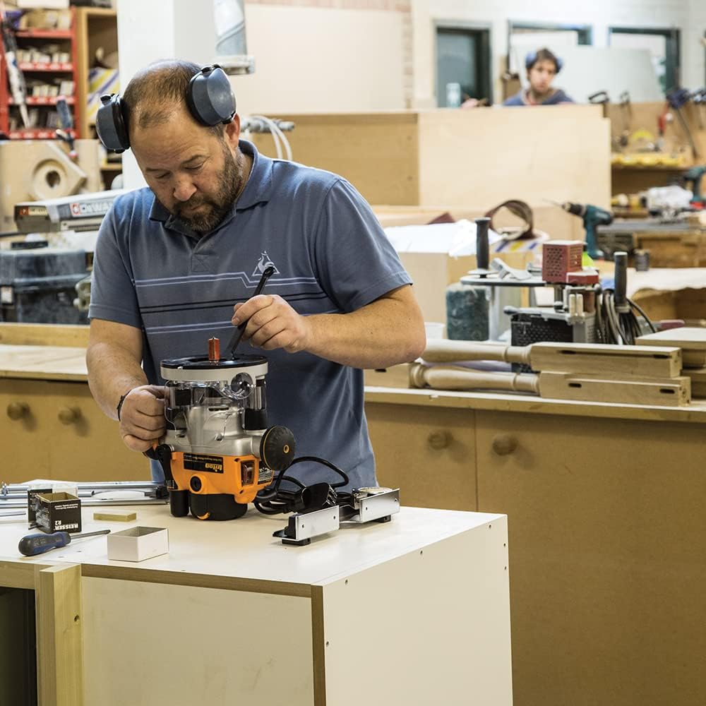 PRECISE CONTROL: Supplied with two bases, the Trimmer Base includes an edge roller guide attachment and the dual circular and flat-sided Plunge Base doubles as a router lift